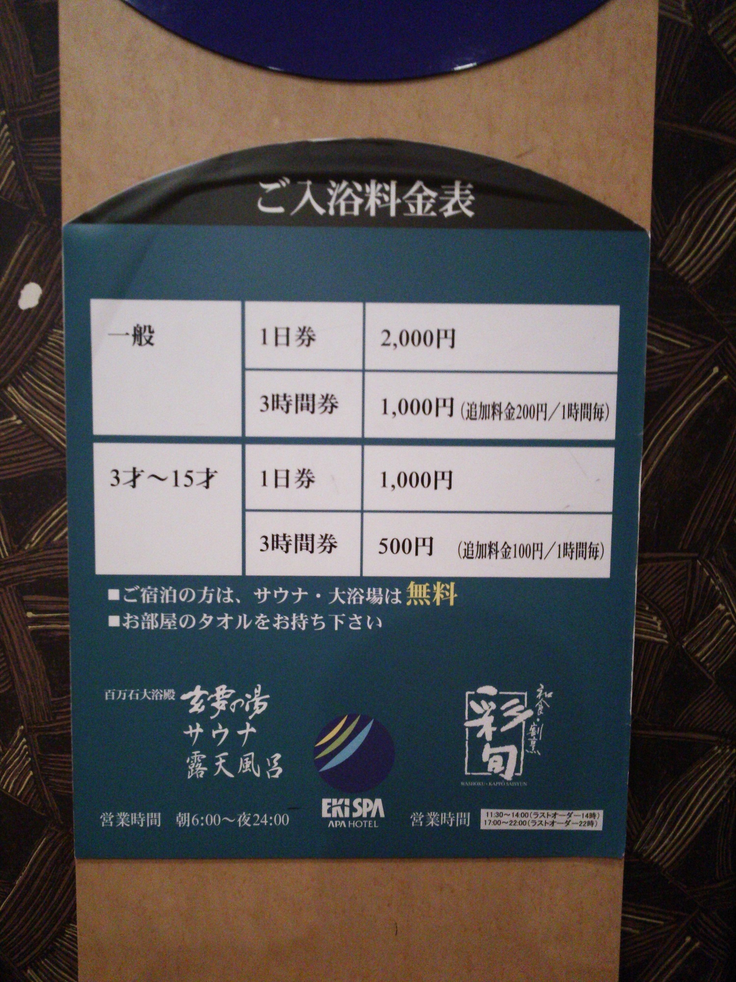 大浴場は2階にあります。ホテルに宿泊している人は、何度でも無料で利用できます。また、1日2,000円、3時間1,000円で、宿泊していない人でも大浴場を利用できます。営業時間は6:00~0:00でして、夜行バスで金沢に到着した人や、昼間に大汗かいて新幹線に乗る前に利用すると便利だと思います。
