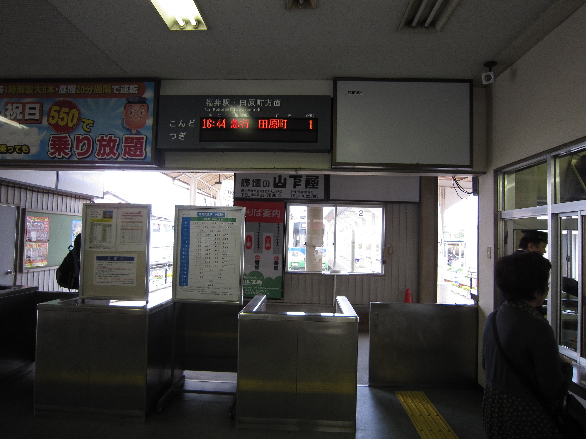 日中は、福井駅行きの普通列が30分に1本、田原町行きの急行が1時間に1本、田原町まで急行運転してえちぜん鉄道に乗り入れる、フェニックス田原町ラインが1時間に1本です。全部で15分に1本と考えれば本数はまずまずなのですが、福井駅行きの30分に1本は少なすぎるのでは?