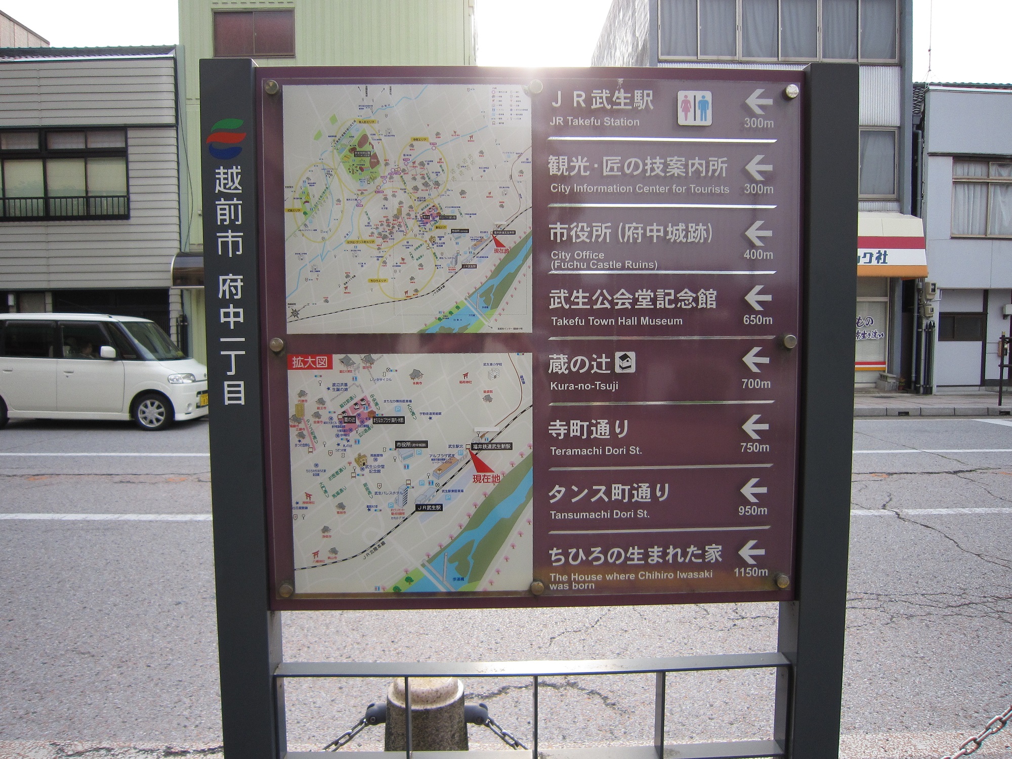 越前武生の旧駅名は、武生新でした(「新武生でないのはなぜ」という突っ込みを入れるのはやめましょう)。なので、周辺の案内地図にも、「福井鉄道 武生新駅」と書いてありました。