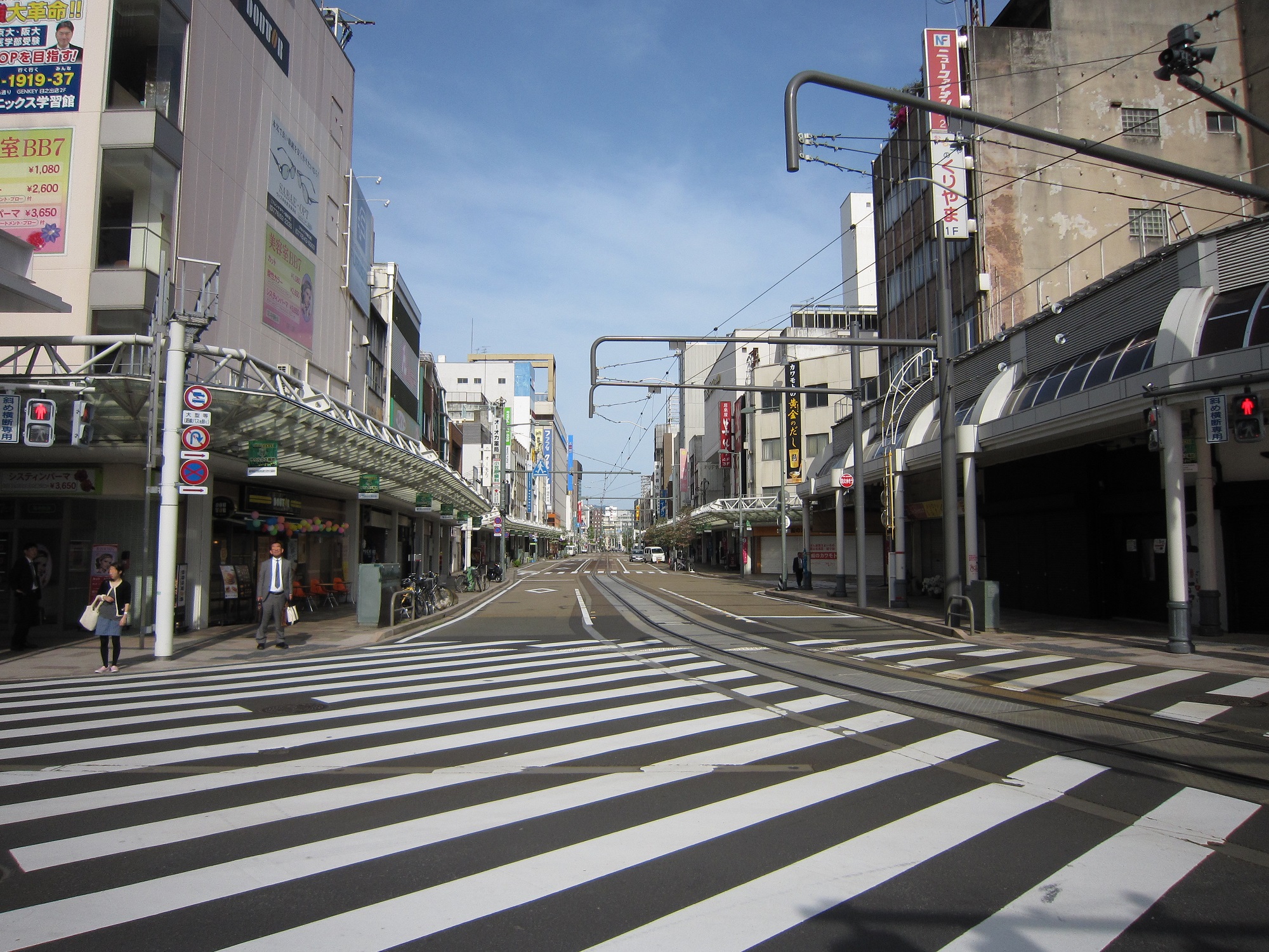 福井鉄道 福井駅付近 この路面電車沿いの商店街が、福井市のメインストリートです