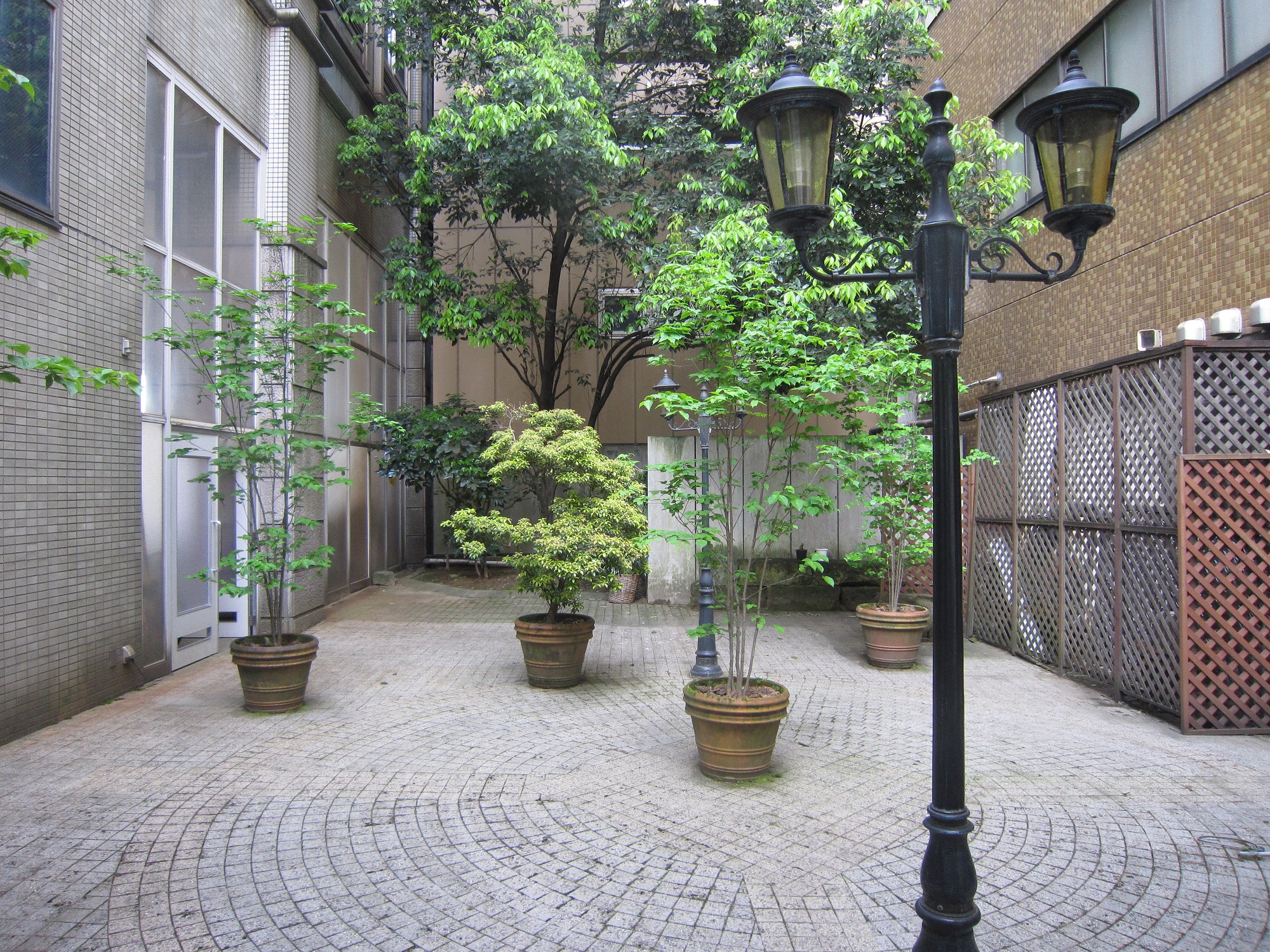 ホテル リバージュアケボノ 中庭 右が本館、左が東館です