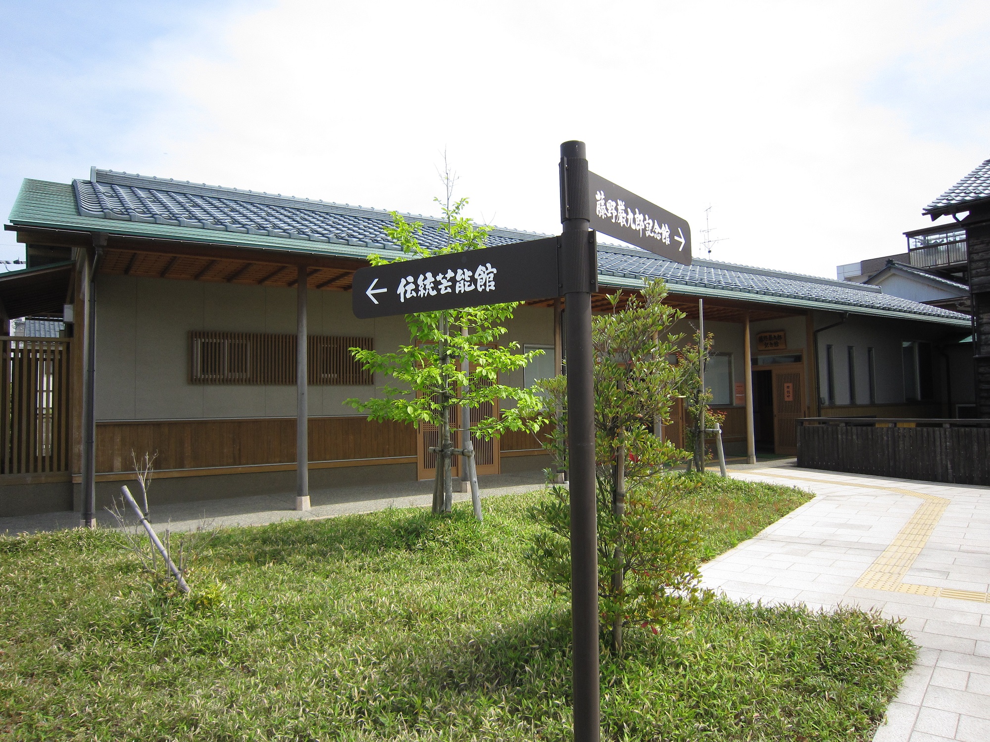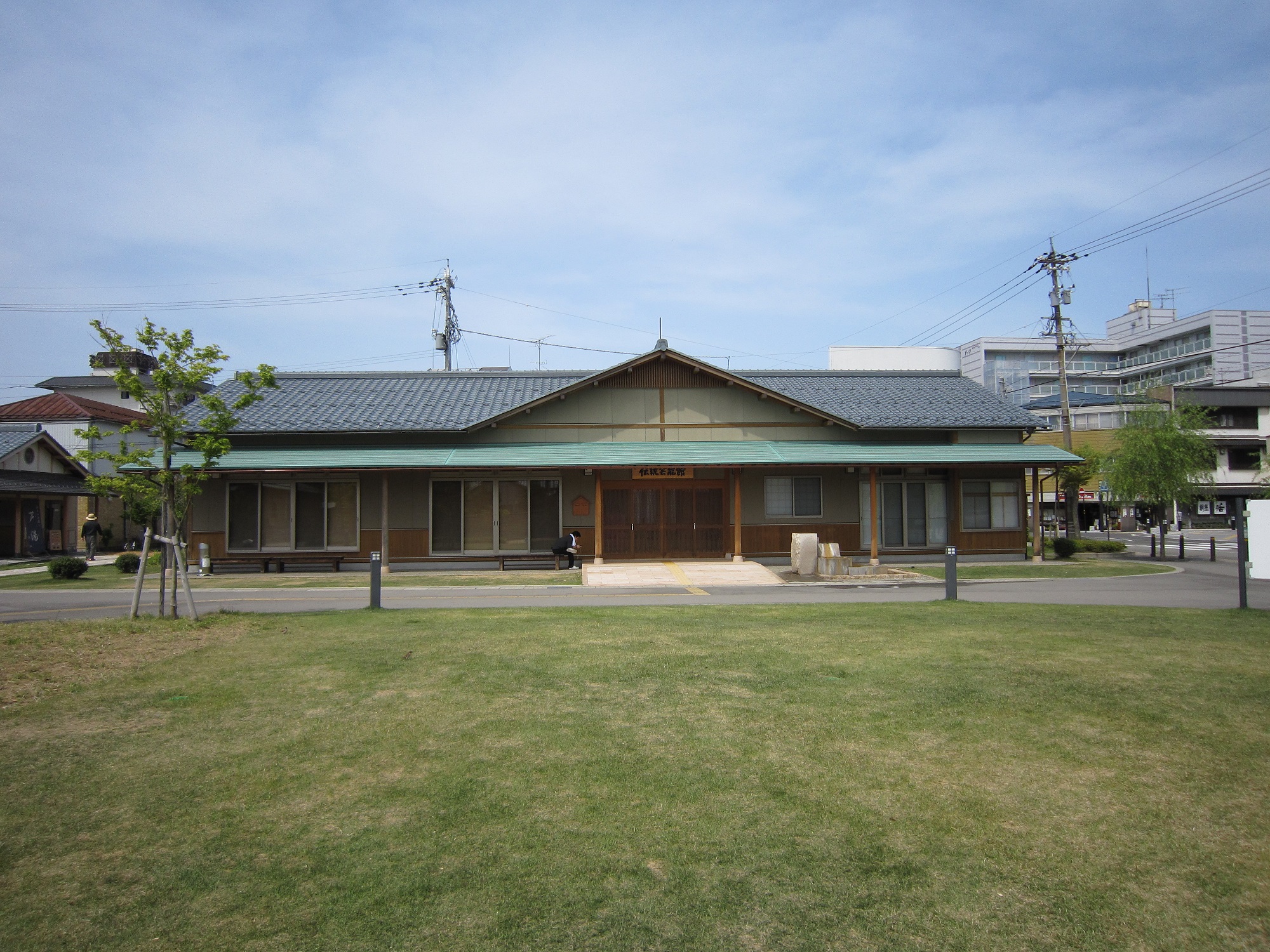 伝統芸能館です。どことなく、公民館のような感じの建物ですね。恐らくはここで稽古ができるようになっているのでしょう。