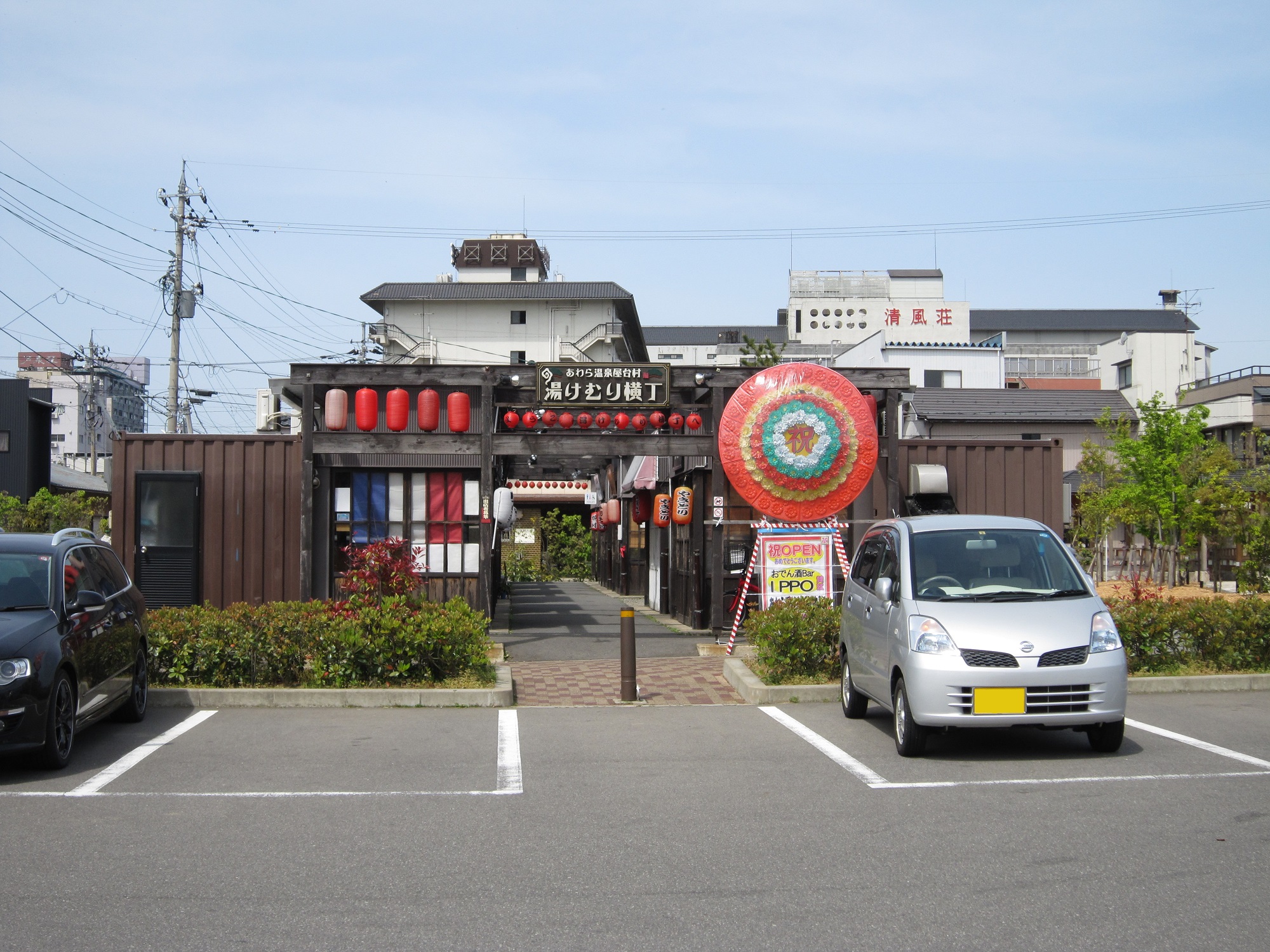 ここがあらわ湯のまち駅から見て、一番手前です。あわら温泉屋台村がありまして、行ってみたいと思ったのですが、こんな昼間に空いてなくて断念しました。