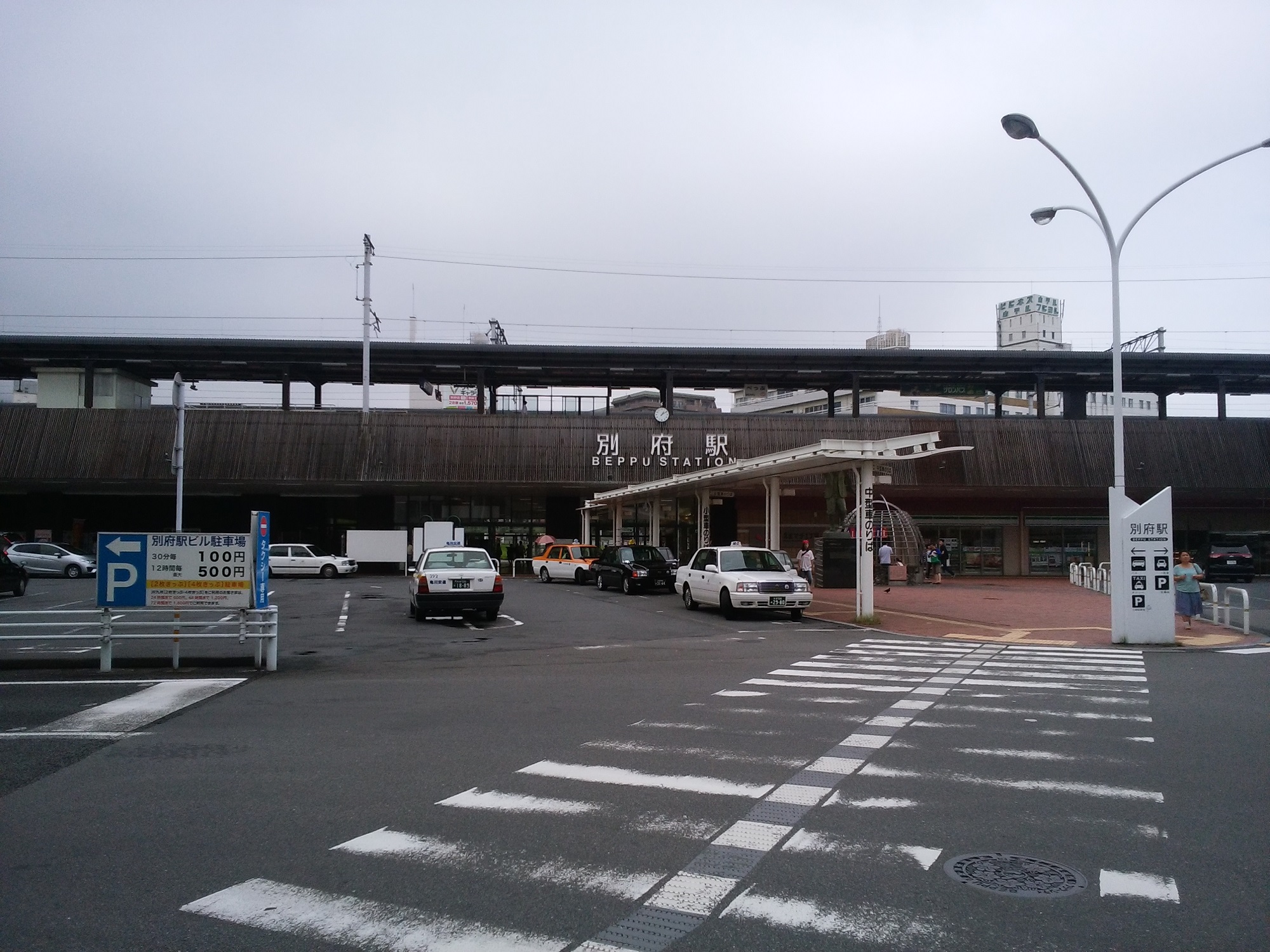 東口です。一応こちらがメインです。バスターミナルとタクシー乗り場があります。ただし、大分空港行きのバスに乗るのであれば、ここから10分ほど歩いた先の別府北浜バスターミナルへ行ったほうが便利です。
