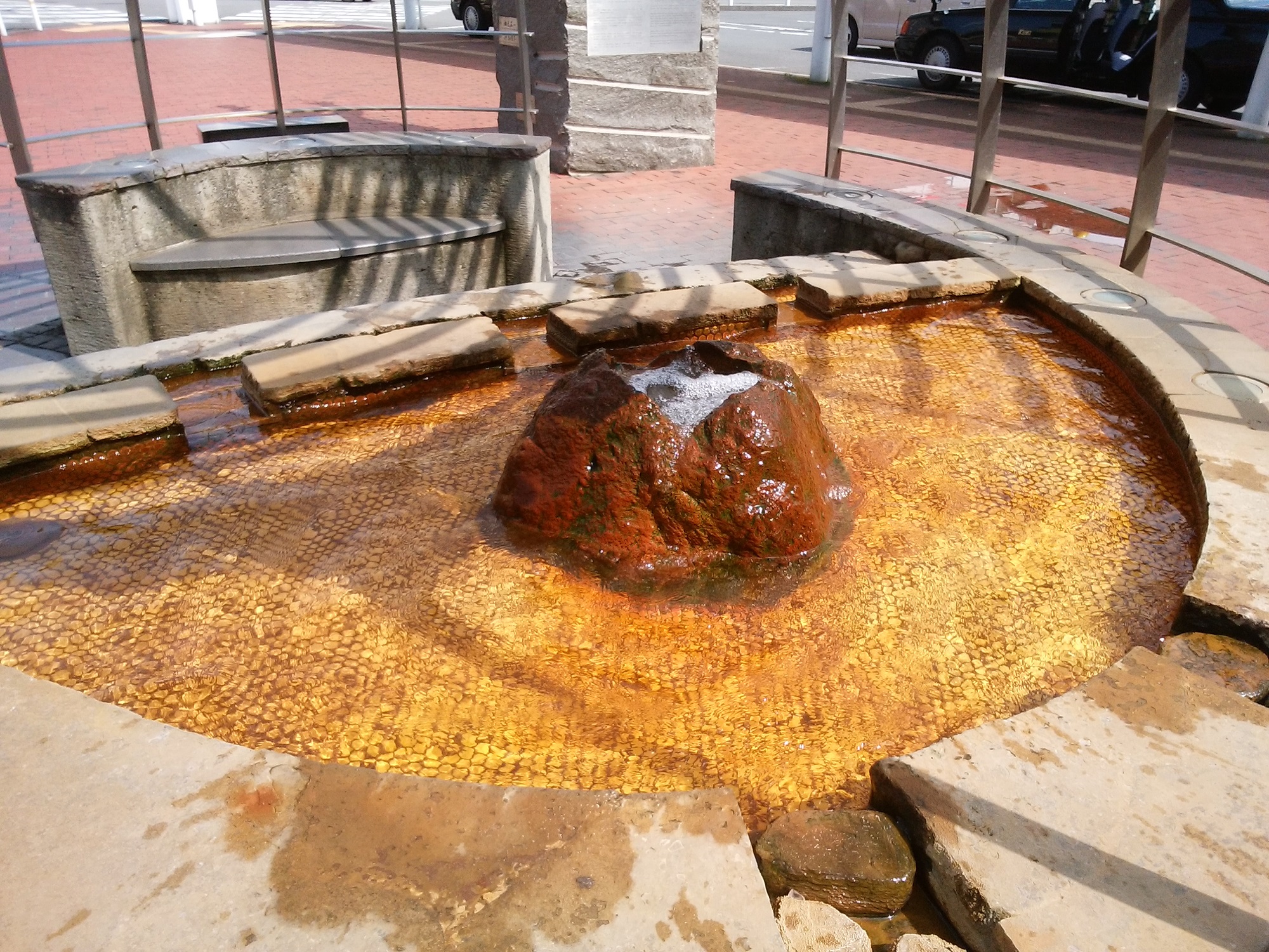 おんせん県を自称する大分県の中で、特に温泉で有名な別府だけに、駅前には手湯があります。
