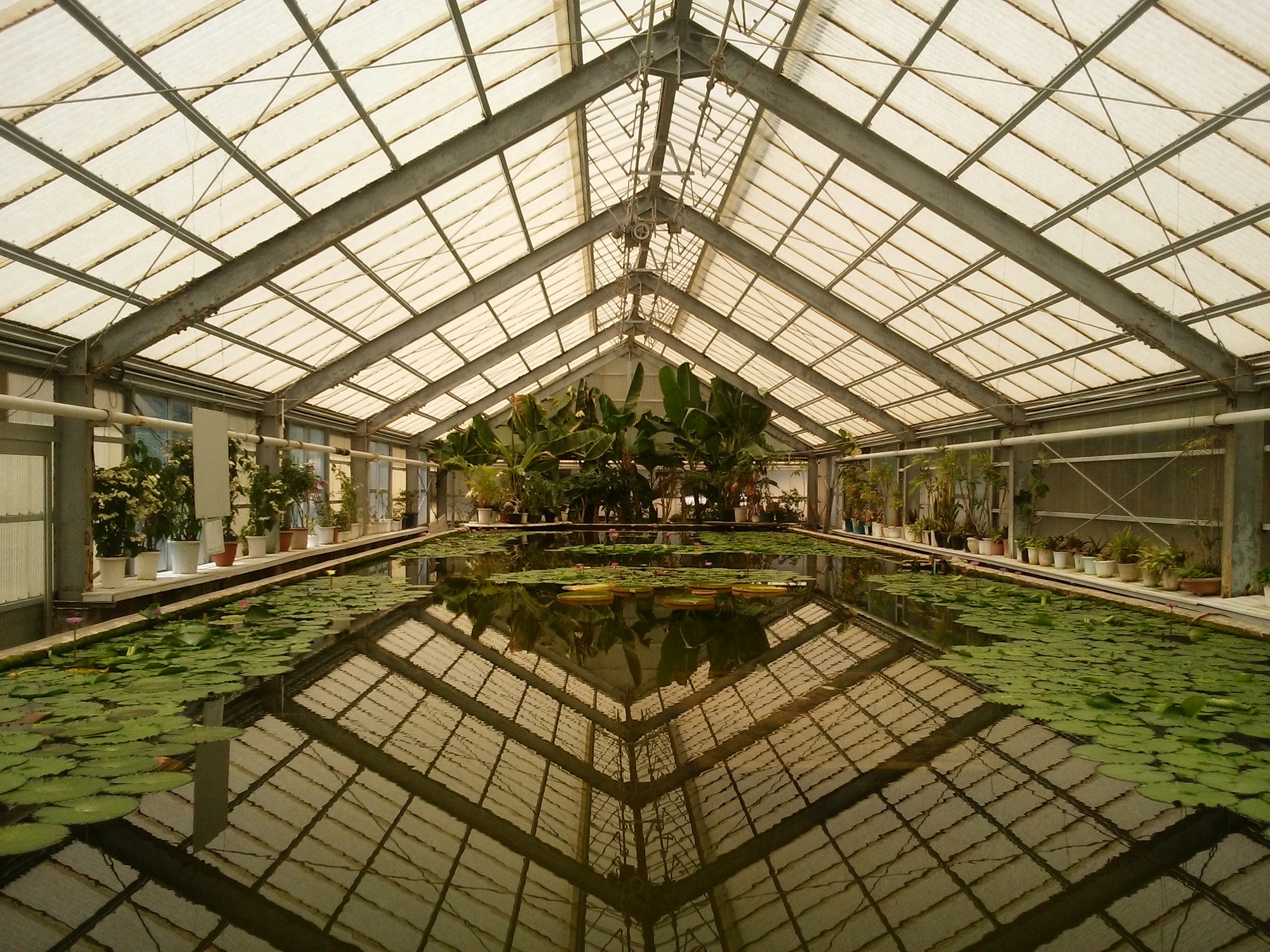中はこんな感じ。大鬼蓮と睡蓮があります。大鬼蓮は1年生の植物で、6月~8月に直径1m80cmの成葉を鑑賞できます。熱帯性睡蓮は多年生の植物で、5月~11月は露地で、12月~4月は温室で栽培するそうです。