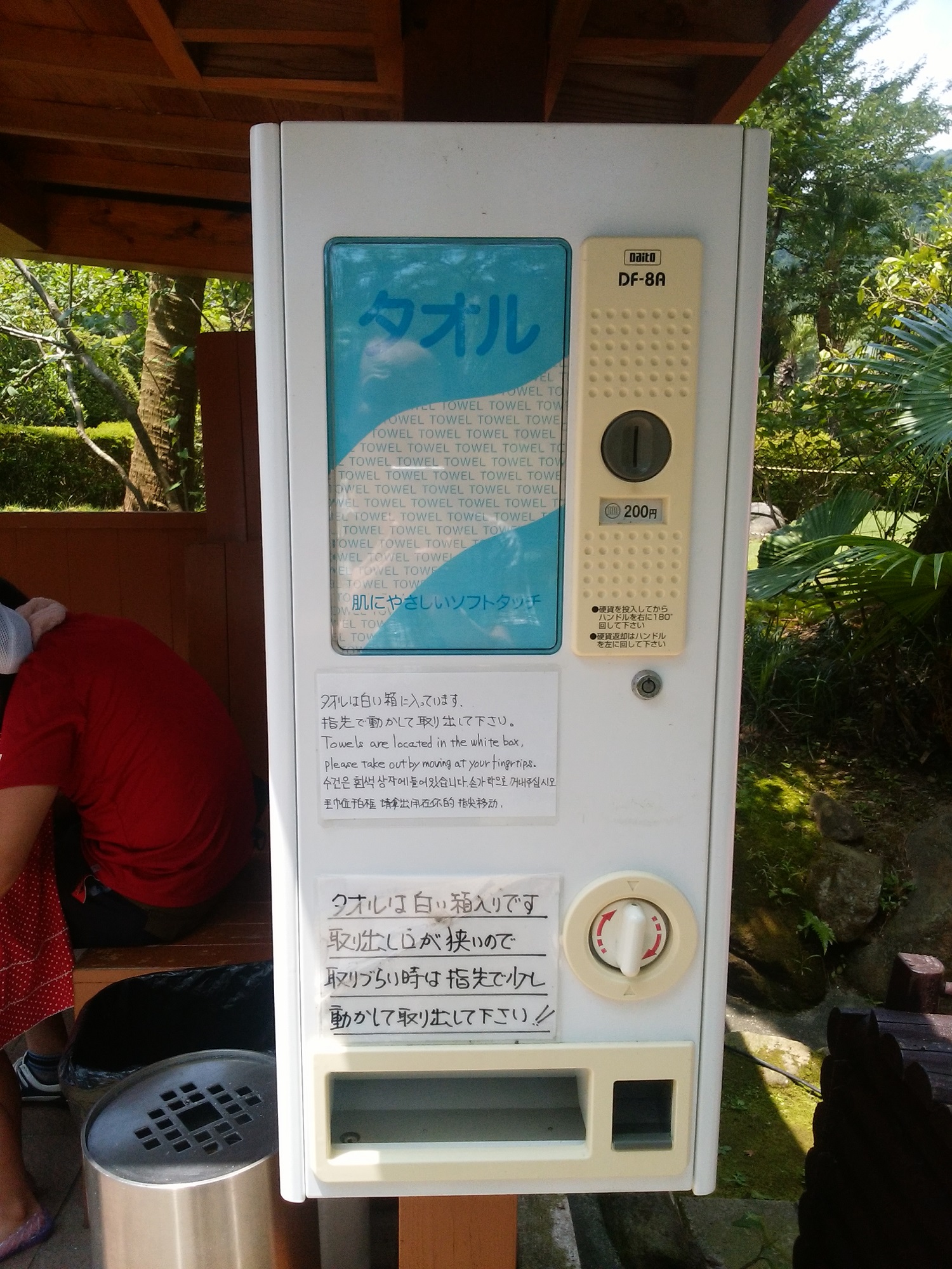 タオルをお持ちでない方は、こちら。自動販売機で200円で販売しています。