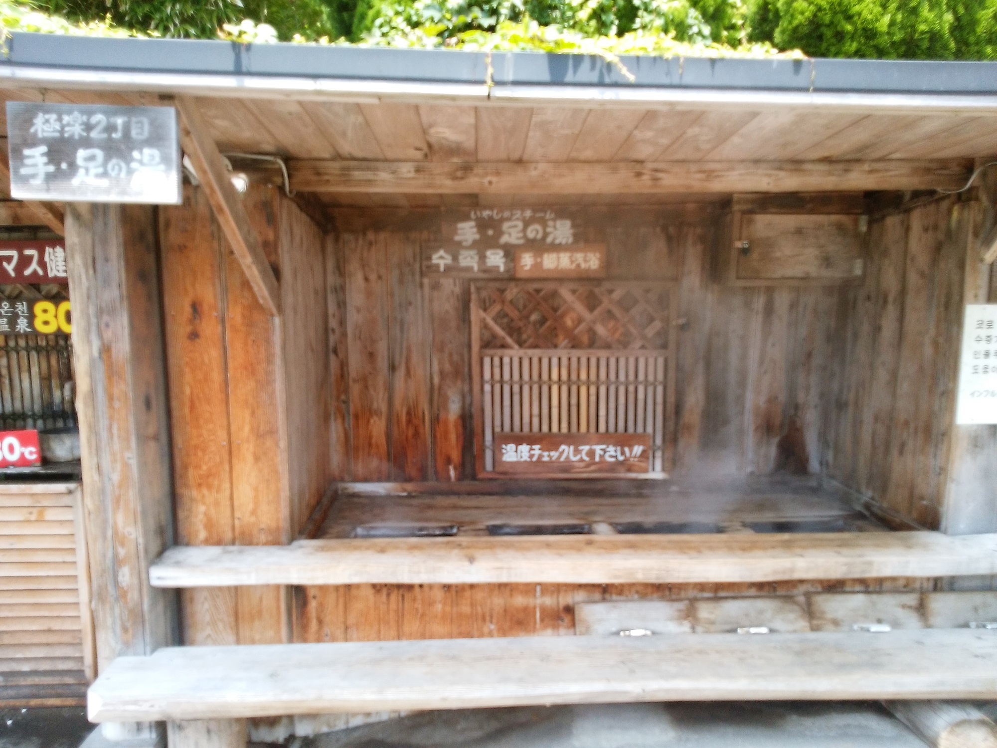 三丁目の先には、体験コーナーがあります。まずは、足岩盤浴。下から蒸気が噴出していまして、ここへ足を置いてみましょう・・・と言うことです。