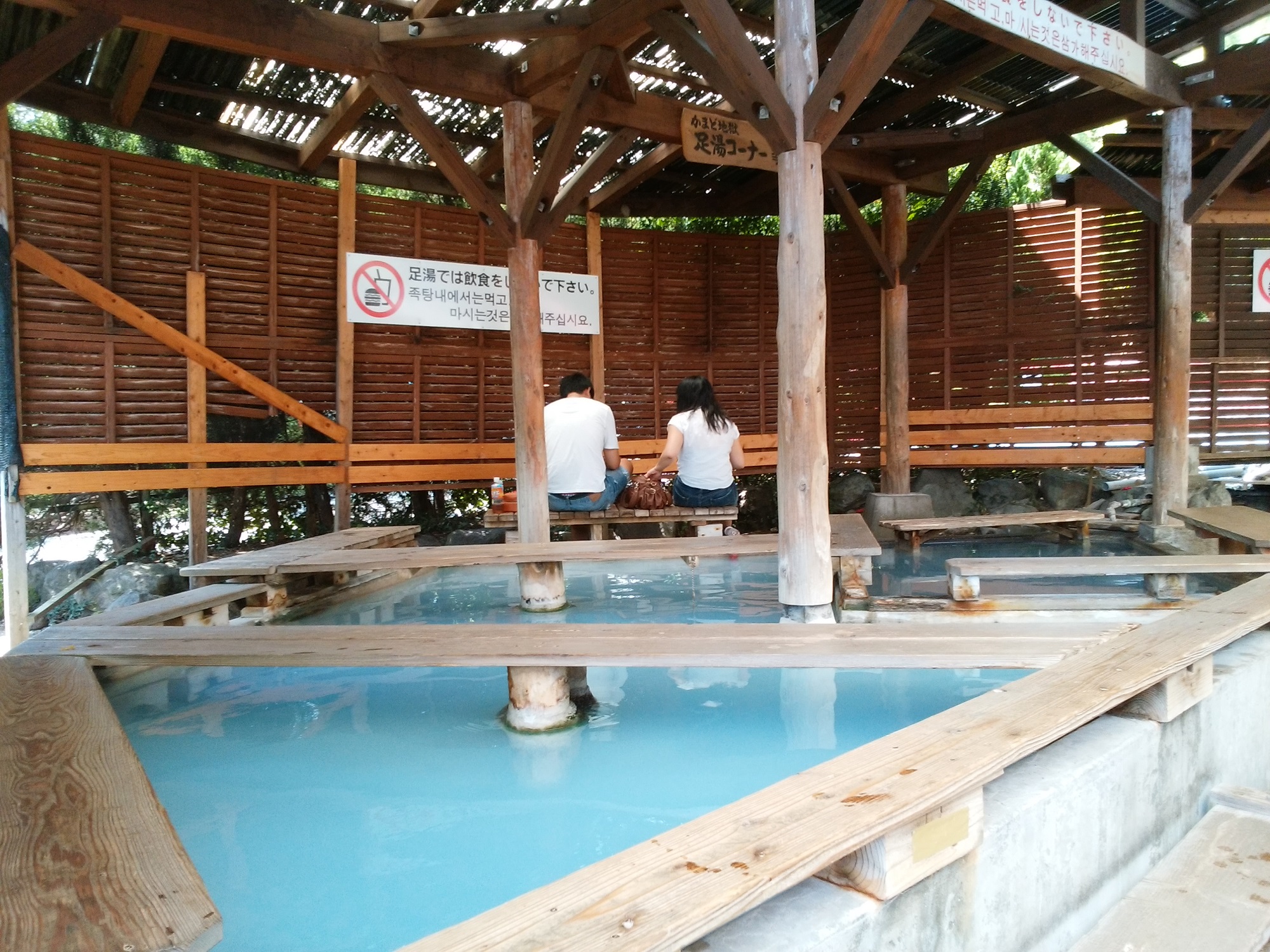 最後に、足湯があります。コバルトブルーのお湯に入れます。かまど地獄の入場料のみで入れます。