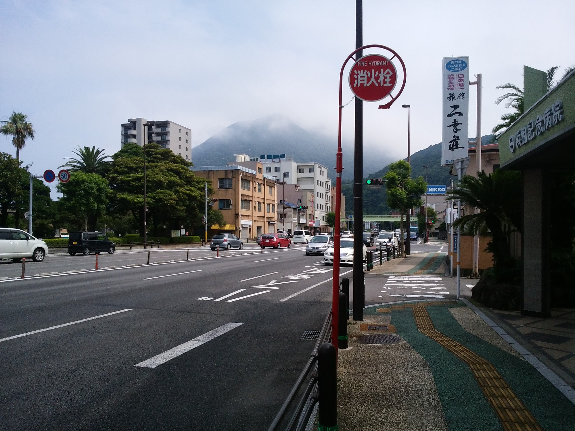 別府駅に着いたのはいいんですけど、はてこれからどうしていいものやら。で、キューティー吉本は何を思ったのか、浜脇温泉まで行くことにしました。でも、どのバスに乗っていいかわからず。なので、歩くことにしました。まずは、別大国道まで歩いてみます。