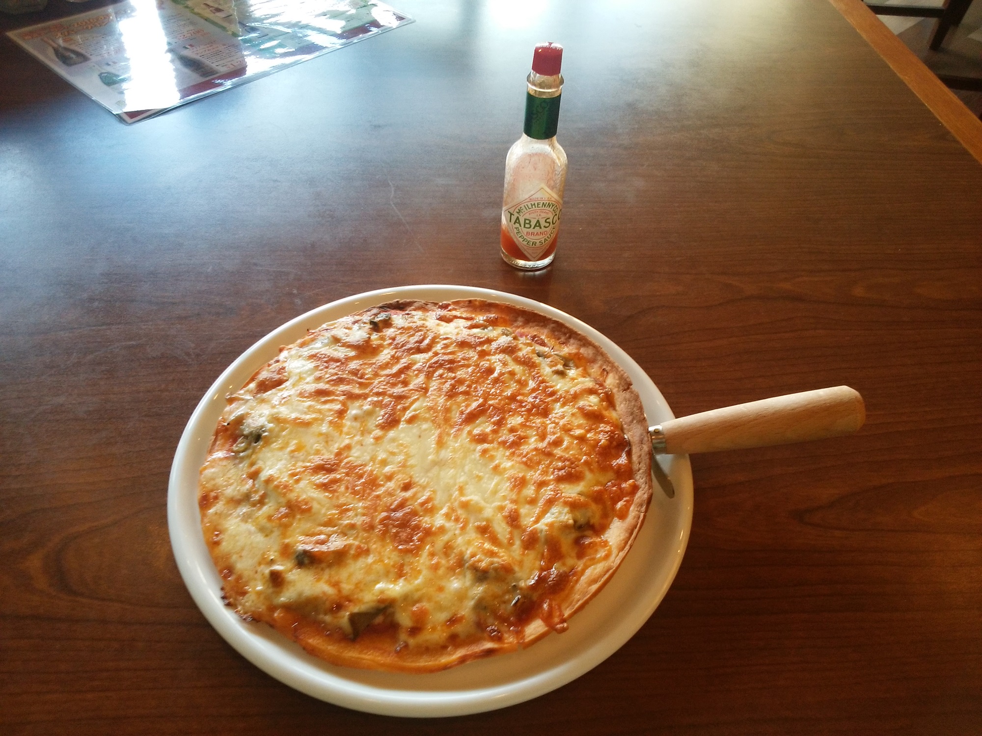 実物を見て、びっくり。まず、チーズときのこの盛りの厚さ。薄ーい生地の上に、どーんと盛ってあります。しかも、きのこの香りがとってもいい匂い。食欲をそそります。ただ、肉系一切ゼロにして、相当なボリュームがありまして、一人で食べるときついかもしれません。