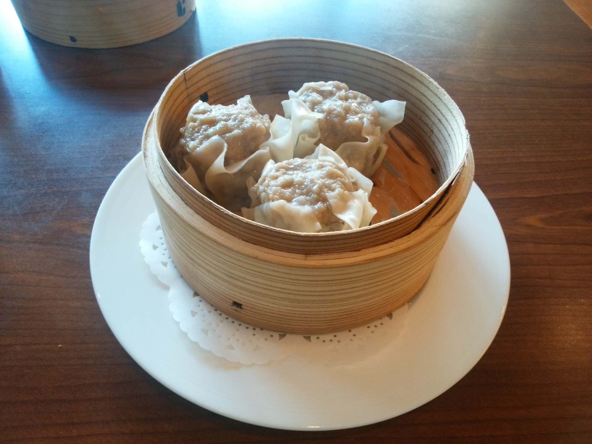 次に注文したのが、肉焼売。600円(税別)でした。ご覧の通り、ちゃんと蒸し器に入った状態で出てきました。この肉焼売も粒が大きくて、とってもジューシー。うまかったですよ。