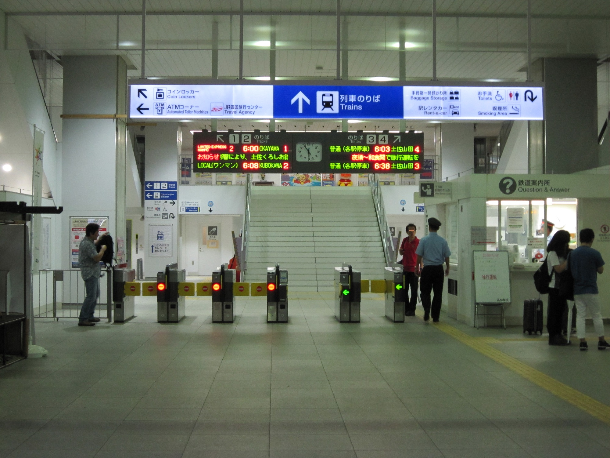 恐らくなのですが、JR土讃線は電化されていなくて、全部ディーゼルカーなんですね。それが証拠に、この記事ののりばとか列車とかの上に架線がなく、列車の頭の上がすっきりしているんです。