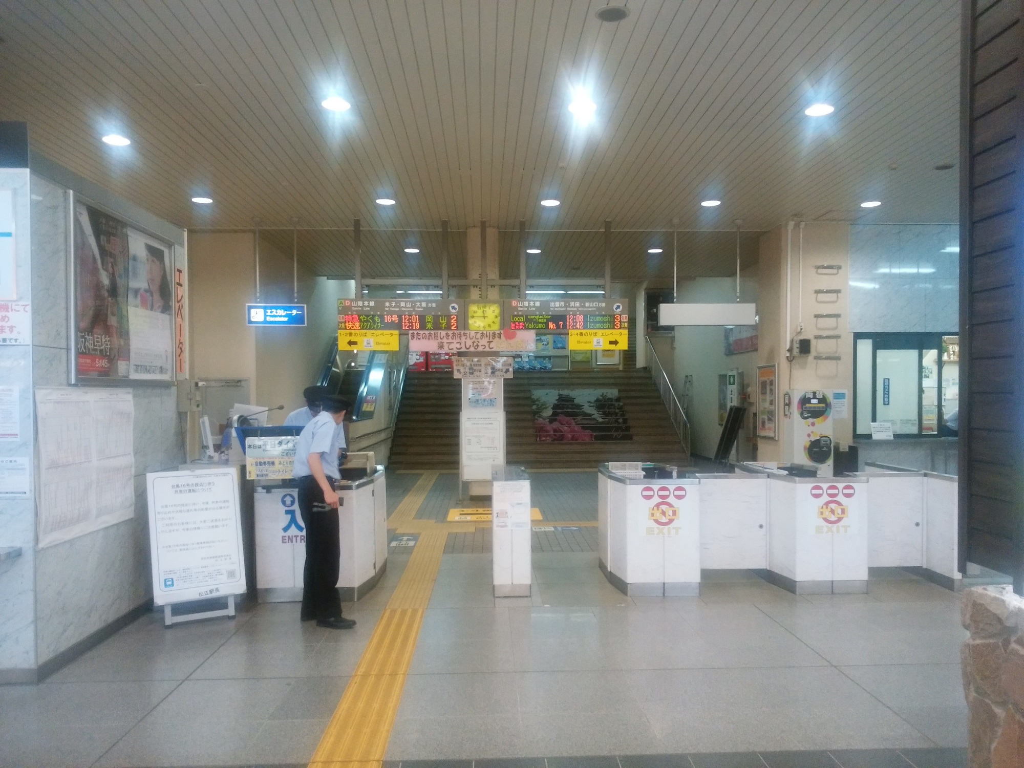 改札口です。自動改札機はなく、改集札は駅員さんが手で行います。まあ本線とは名ばかりで、長大なローカル線と揶揄される山陰本線ですから、そりゃあ自動改札がなくても仕方がないわな・・・と思っていたのですが・・・