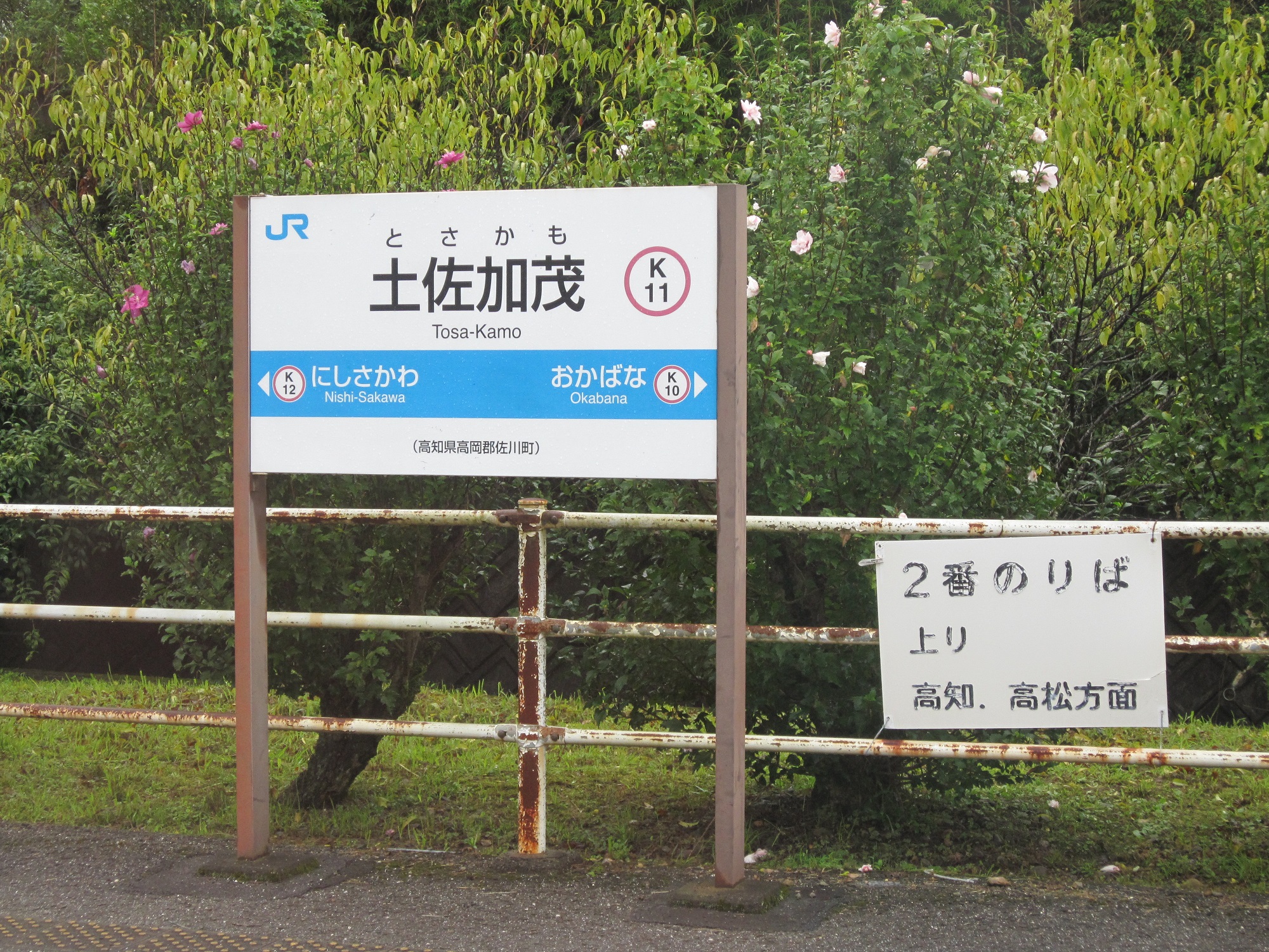 漢字の駅名票を見て、納得。土佐加茂駅だったんですね。