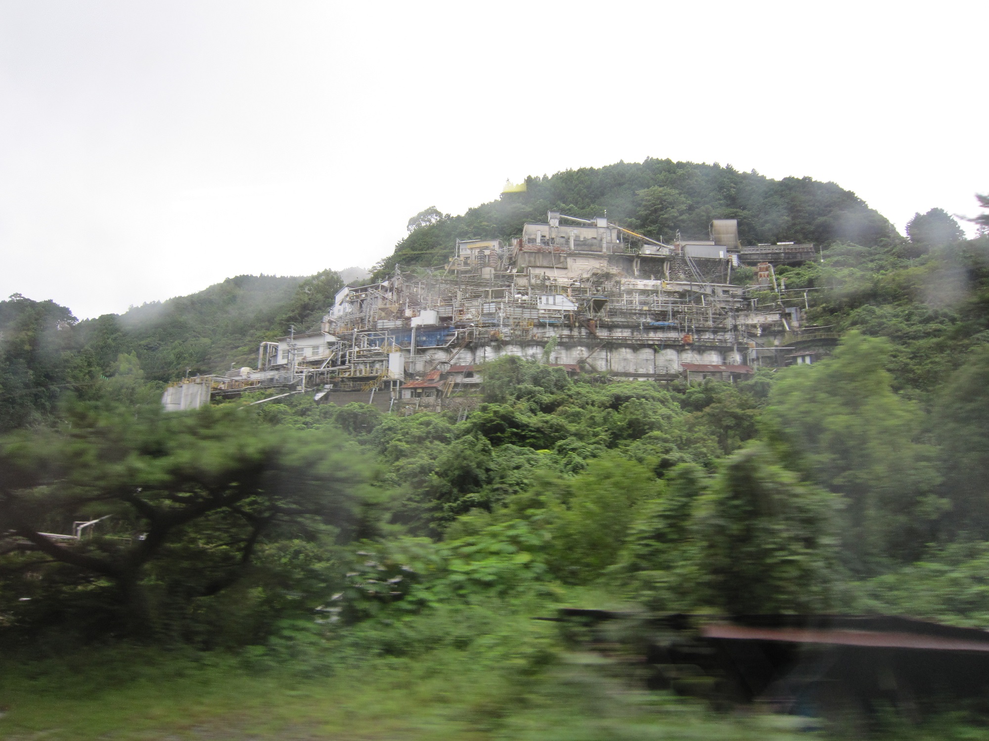 吾桑駅の手前で、謎の建造物を発見。何かの採掘場のような感じなのですが、一体これは何?