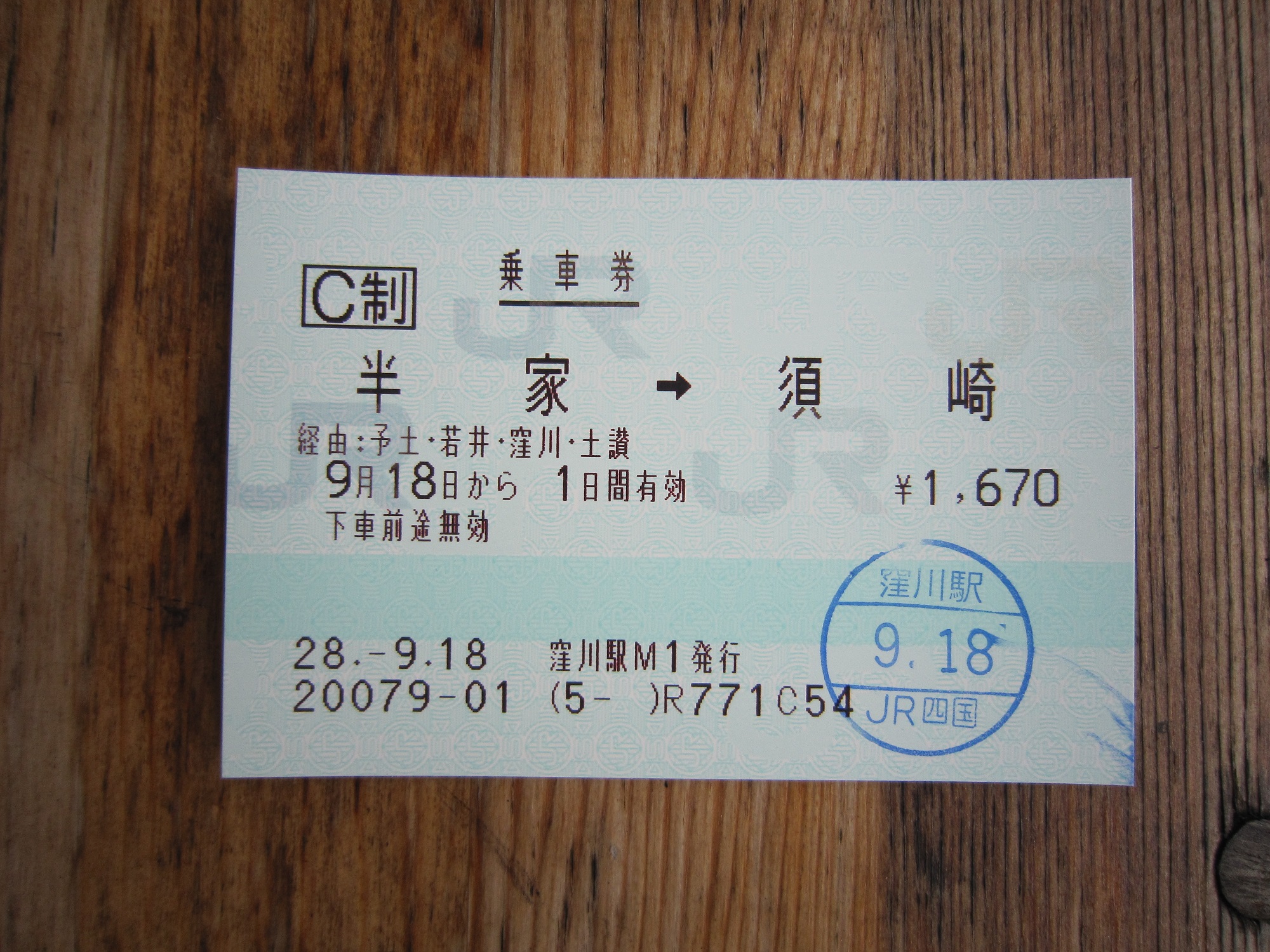 ちゃんと半家駅からの切符を売ってくれました。鍋焼きラーメンが食べたかったので、須崎駅に立ち寄ってから高知に戻りたいと思います。