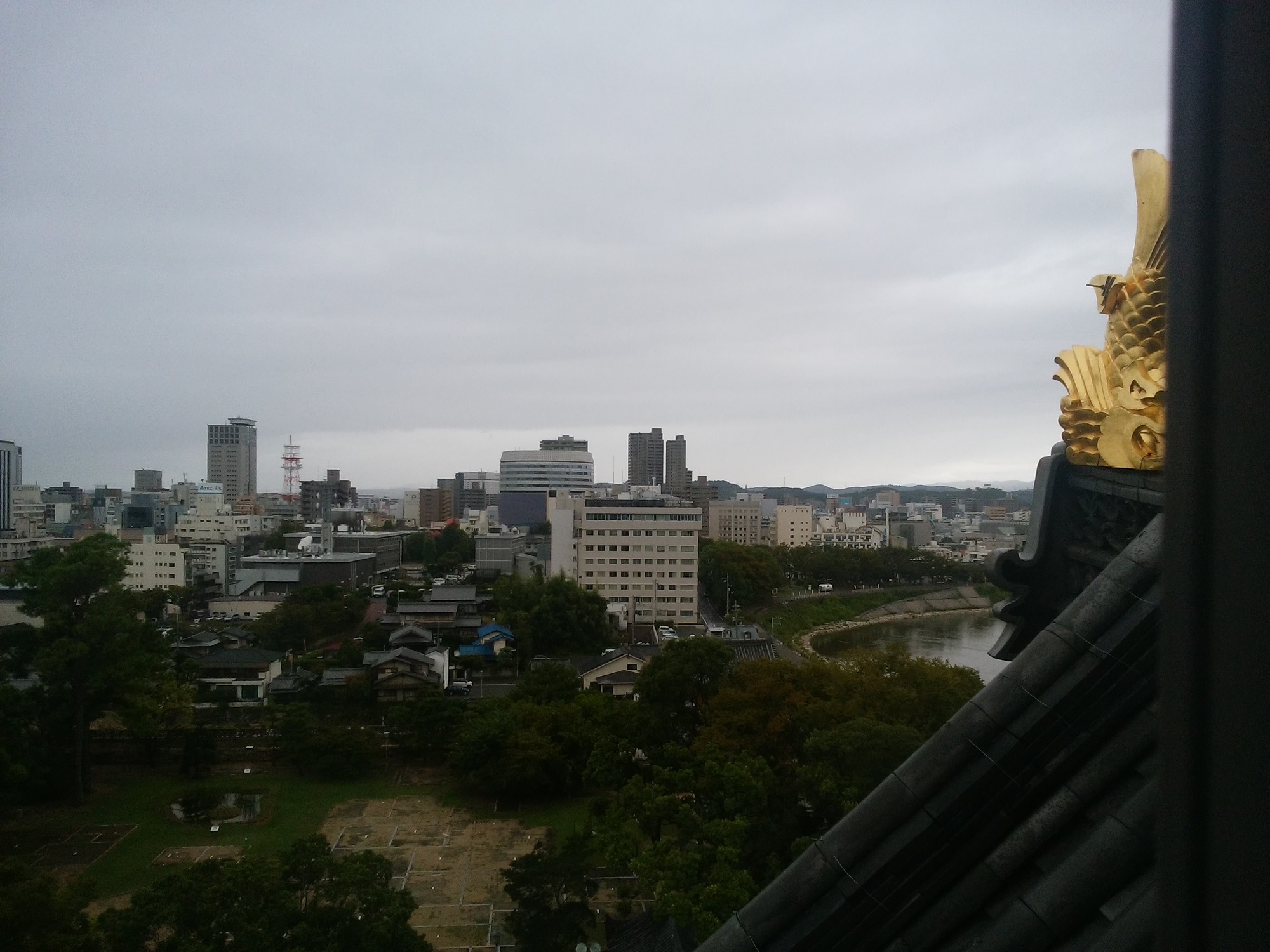岡山駅から路面電車に乗って、城下電停へ行きます。10分ぐらい歩くと、岡山城の天守閣が見えてきます。