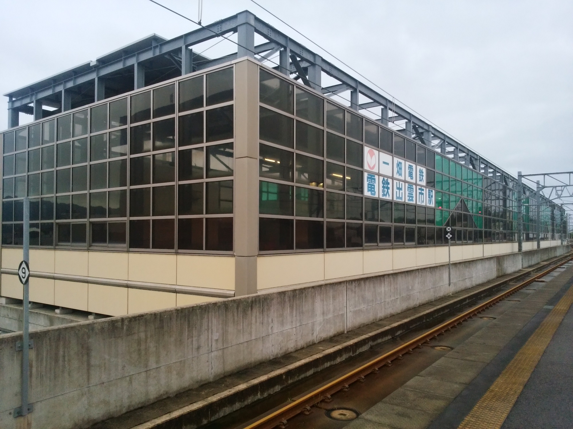 一畑電車も高架線です。JR出雲市駅の北口から、松江方向に歩いていくと、駅舎があります。