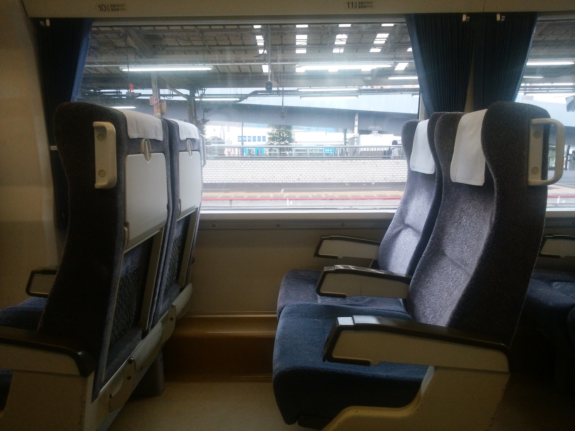 自由席のシートがこちら。That’s 国鉄って感じのシートです。今となっては、こういうシートのほうが珍しかったりするんですけどね。