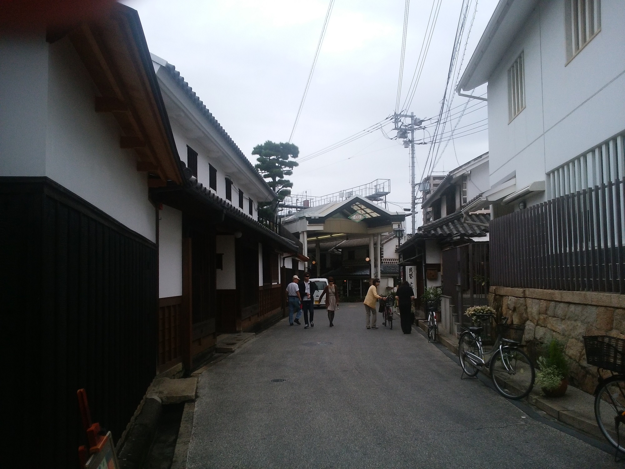 倉敷美観地区が近づくと、お店も様変わりしてきまして。白い壁の立ち並ぶ街並みをリスペクトしてか、和風の外観のお店が立ち並びます。