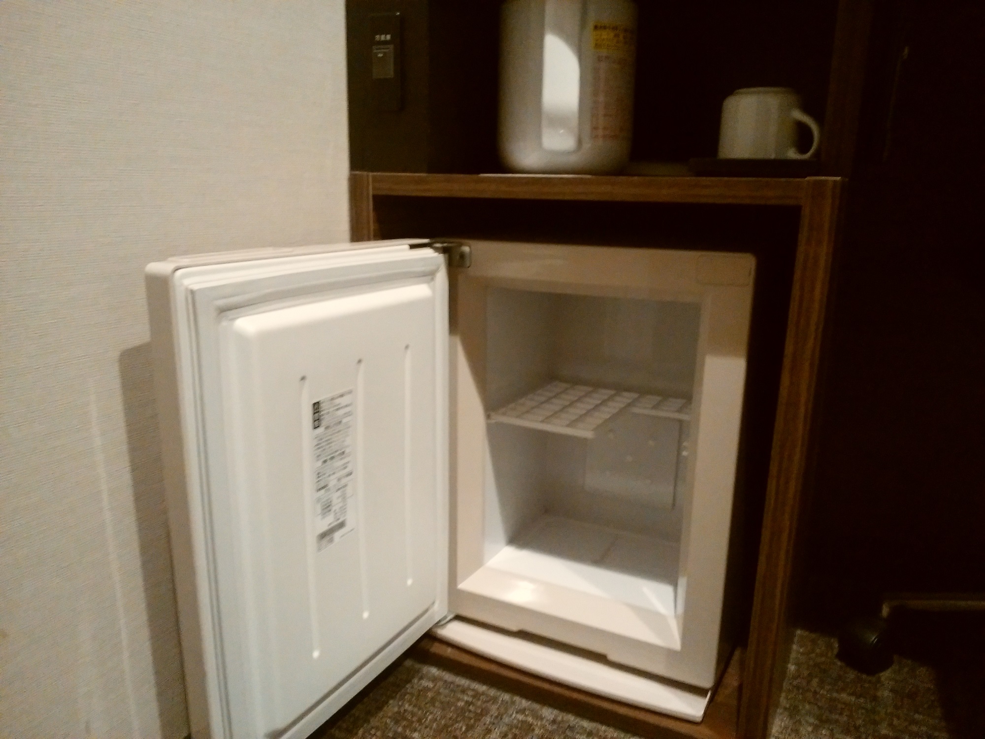 冷蔵庫の中は空・・・っていうか、今時冷蔵庫に有料の飲み物を置いている方が珍しいですね。冷蔵庫の電源を切ることもできます。