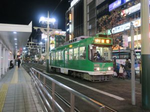 夜に撮った写真をもう一つ。路面電車ですね。すすきので撮りました。