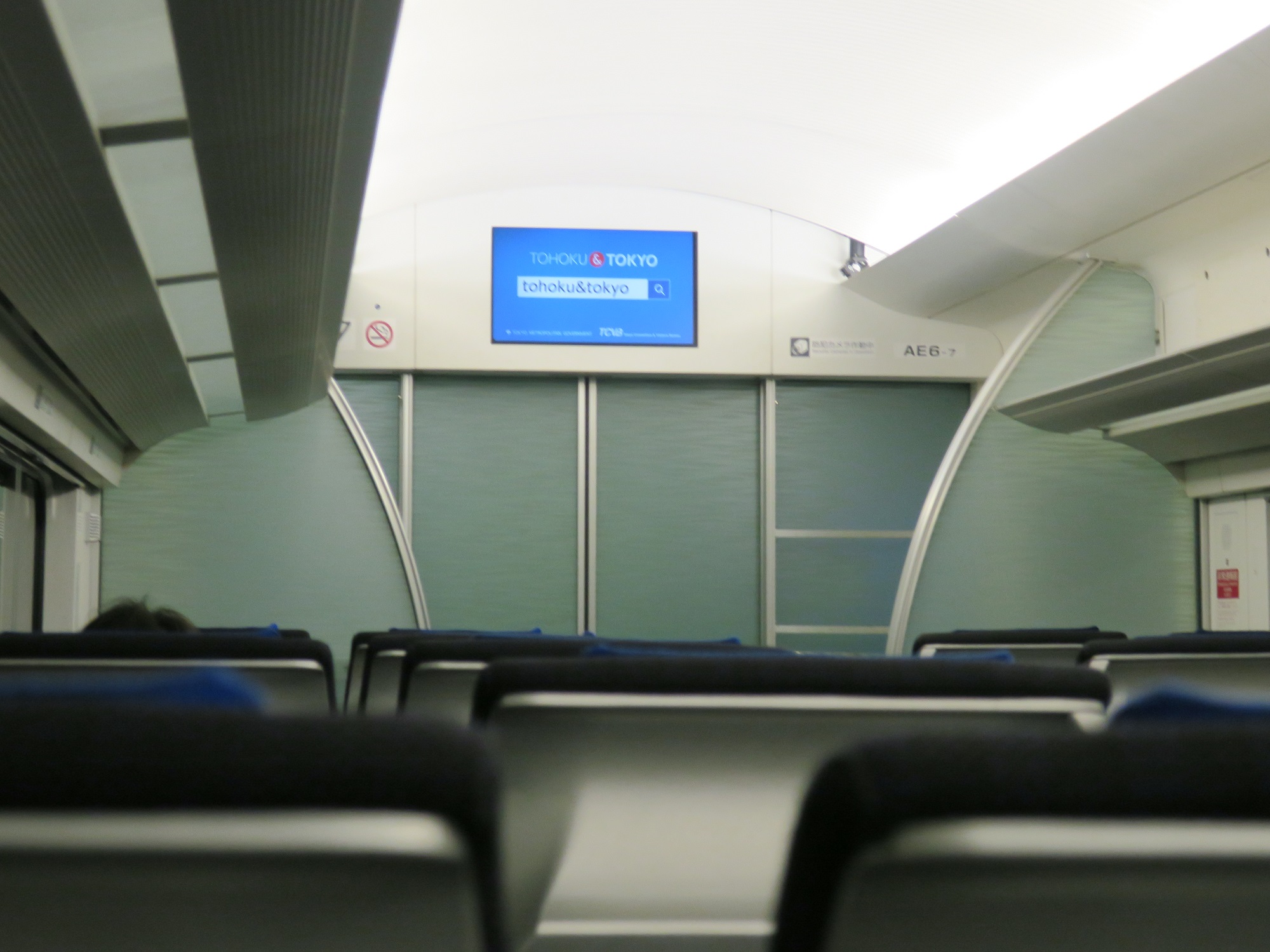 京成電鉄 スカイライナー AE型 室内 頭上に液晶ディスプレイがあります