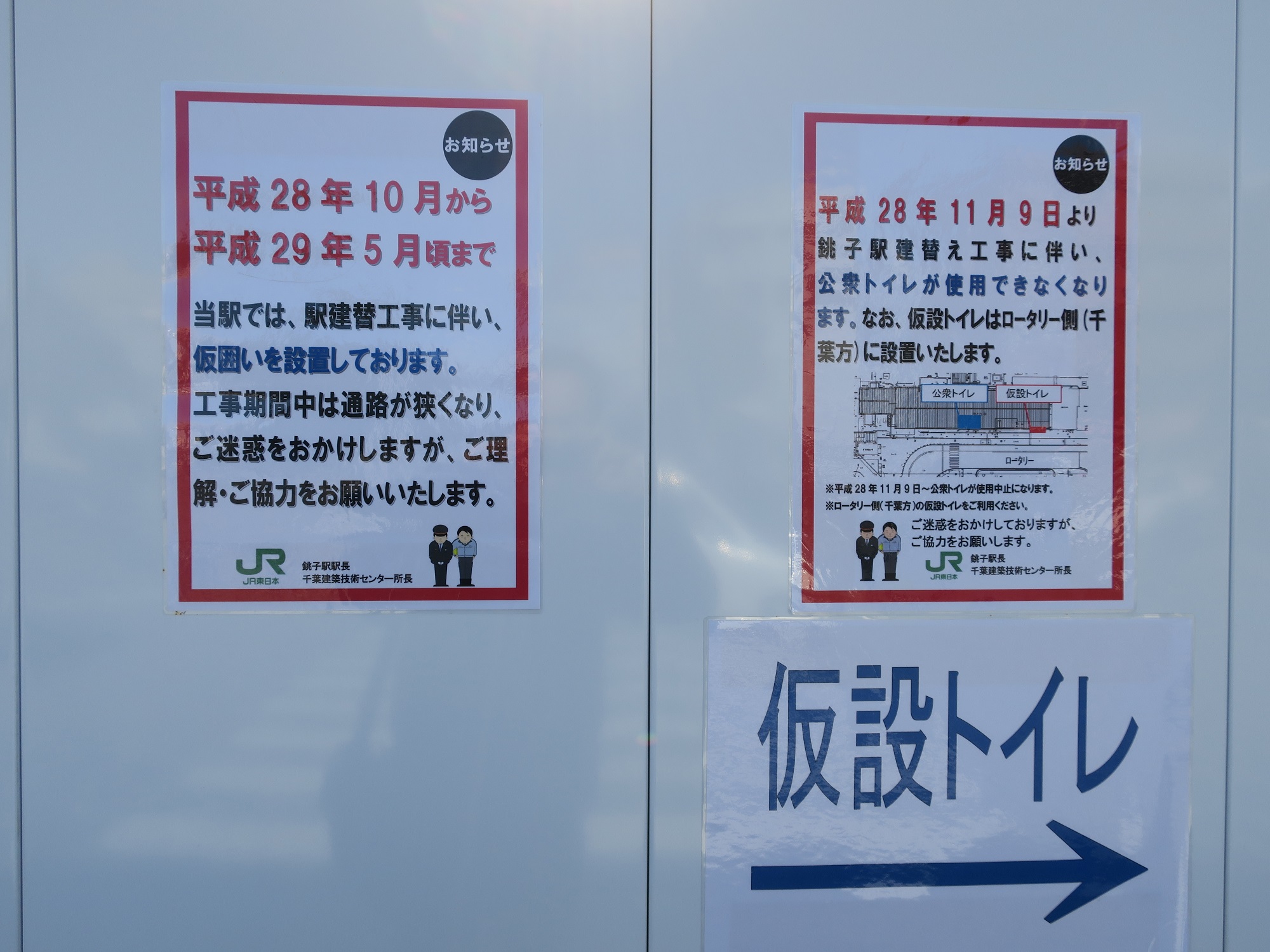 銚子駅へ行ってみると、なんかいつもと様子がおかしい。駅舎の外へ出てみてびっくり。なんと、銚子駅の駅舎が工事中で、取り壊されていたのでした。