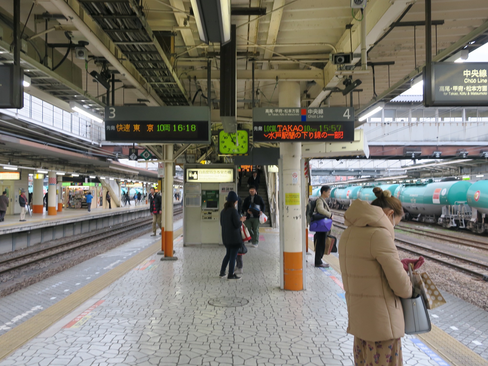3番線・4番線です。主に中央線で高尾・大月甲府・松本方面行きの列車が発着します。