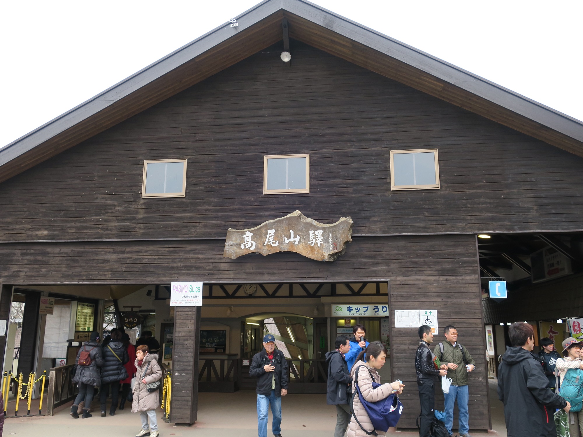 高尾山駅の駅舎です。ログハウス風の駅舎ですね。