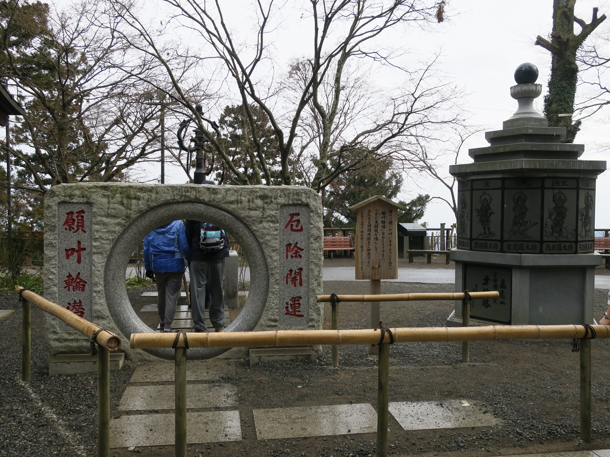 天狗像の向かい側に、厄除開運願叶輪潜なる輪っかがあります。お願い事をしながらこの輪っかをくぐった後、その先にある大錫杖なる鐘をお願い事をしながら鳴らすと、願いが叶うと言われています。
