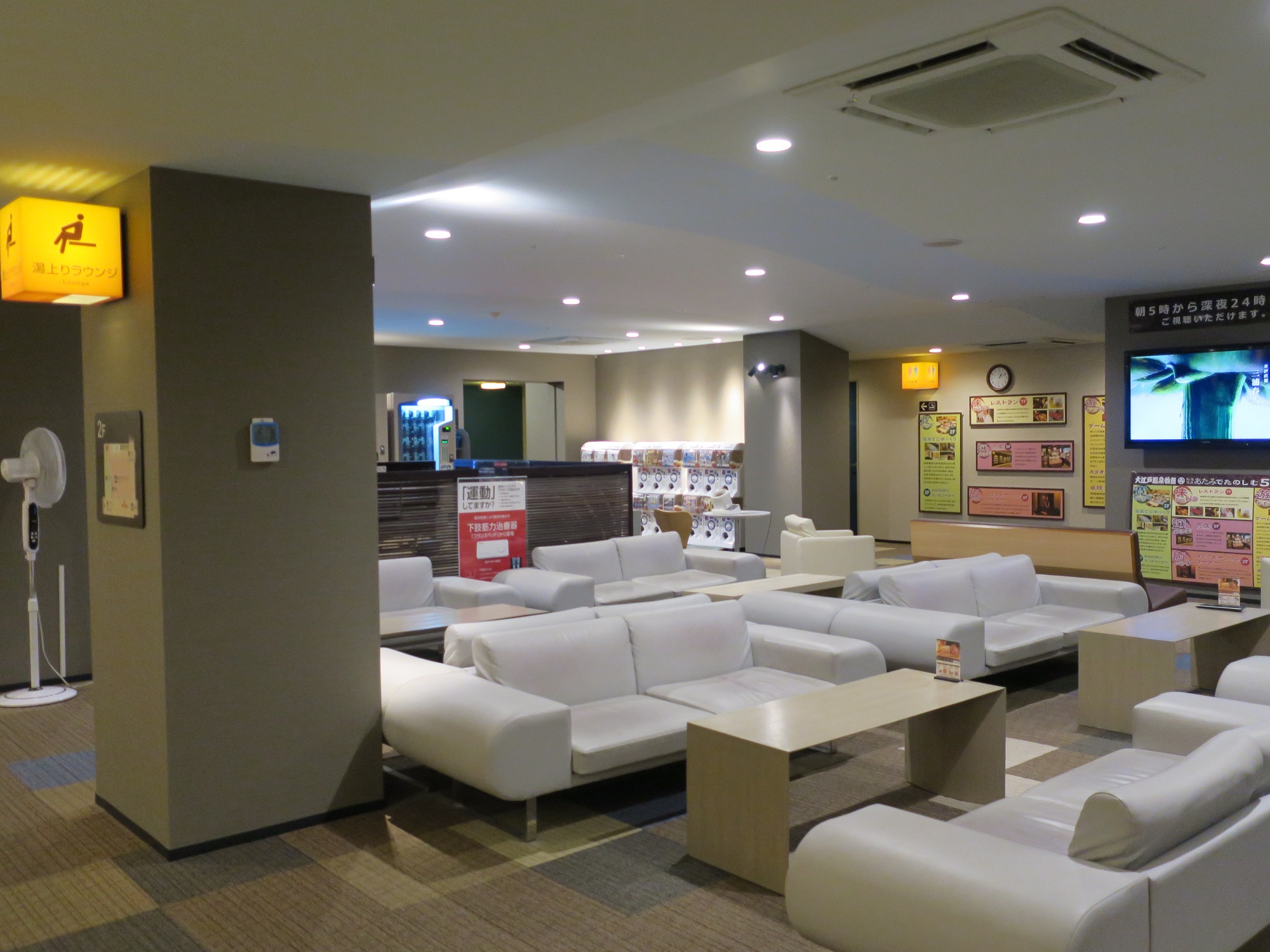 寝っ転がって休むところはないものの、お風呂から上がったら湯上りラウンジで休憩できます。また、宿泊者専用だと思うのですが、コインランドリーとマンガコーナーがありました。
