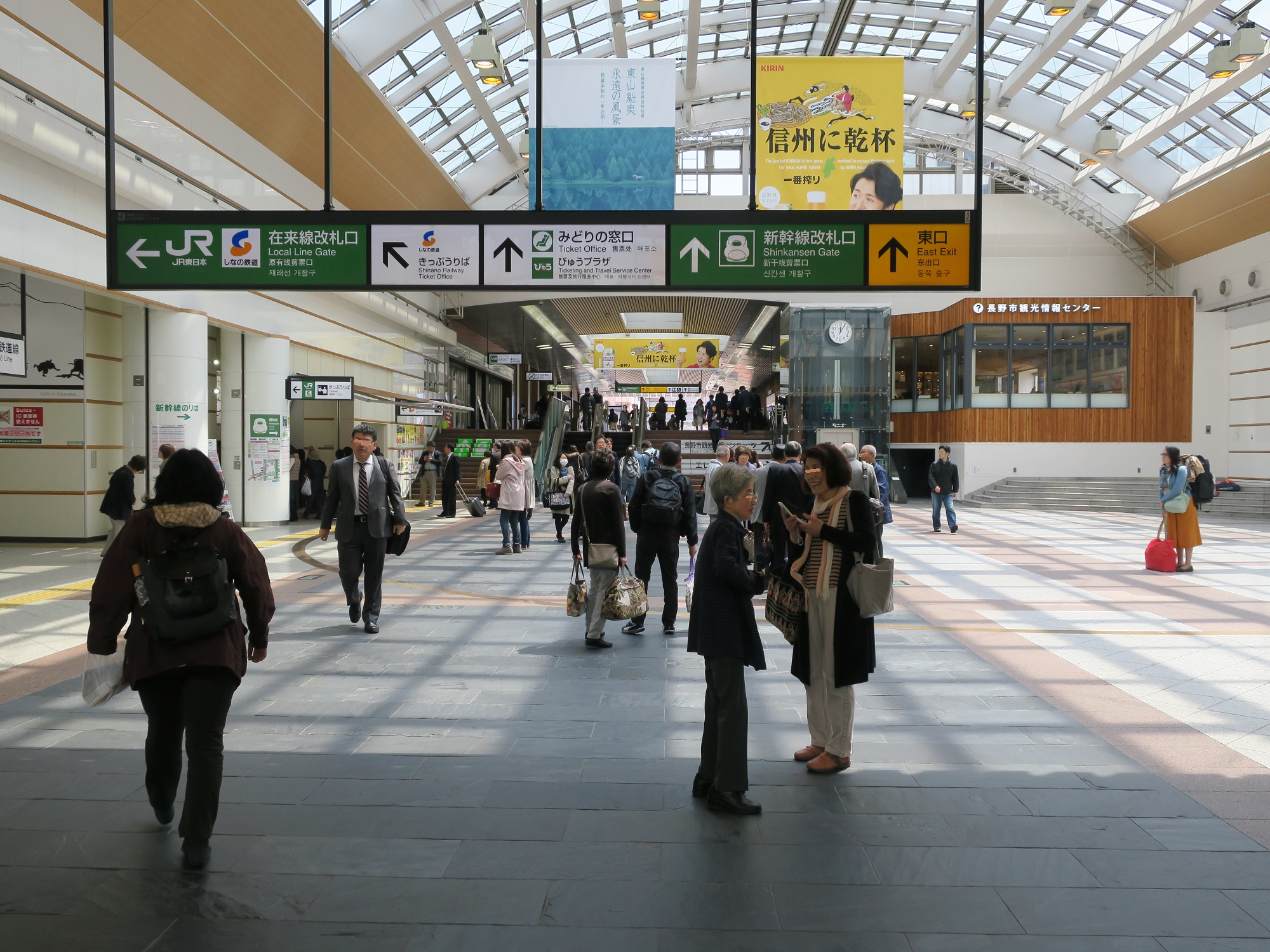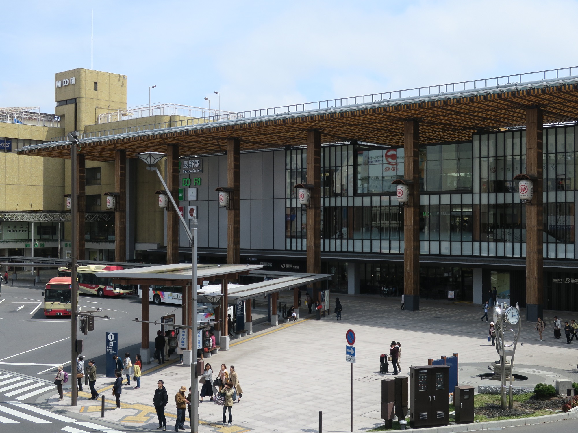 長野県の県庁所在地、長野駅です。かつては長野新幹線の終点だったのですが、北陸新幹線が延伸開業した結果、途中駅になりました。また、元々は信越本線と飯山線が乗り入れる駅だったのですが、北陸新幹線ができた結果、並行在来線がしなの鉄道線となりました。