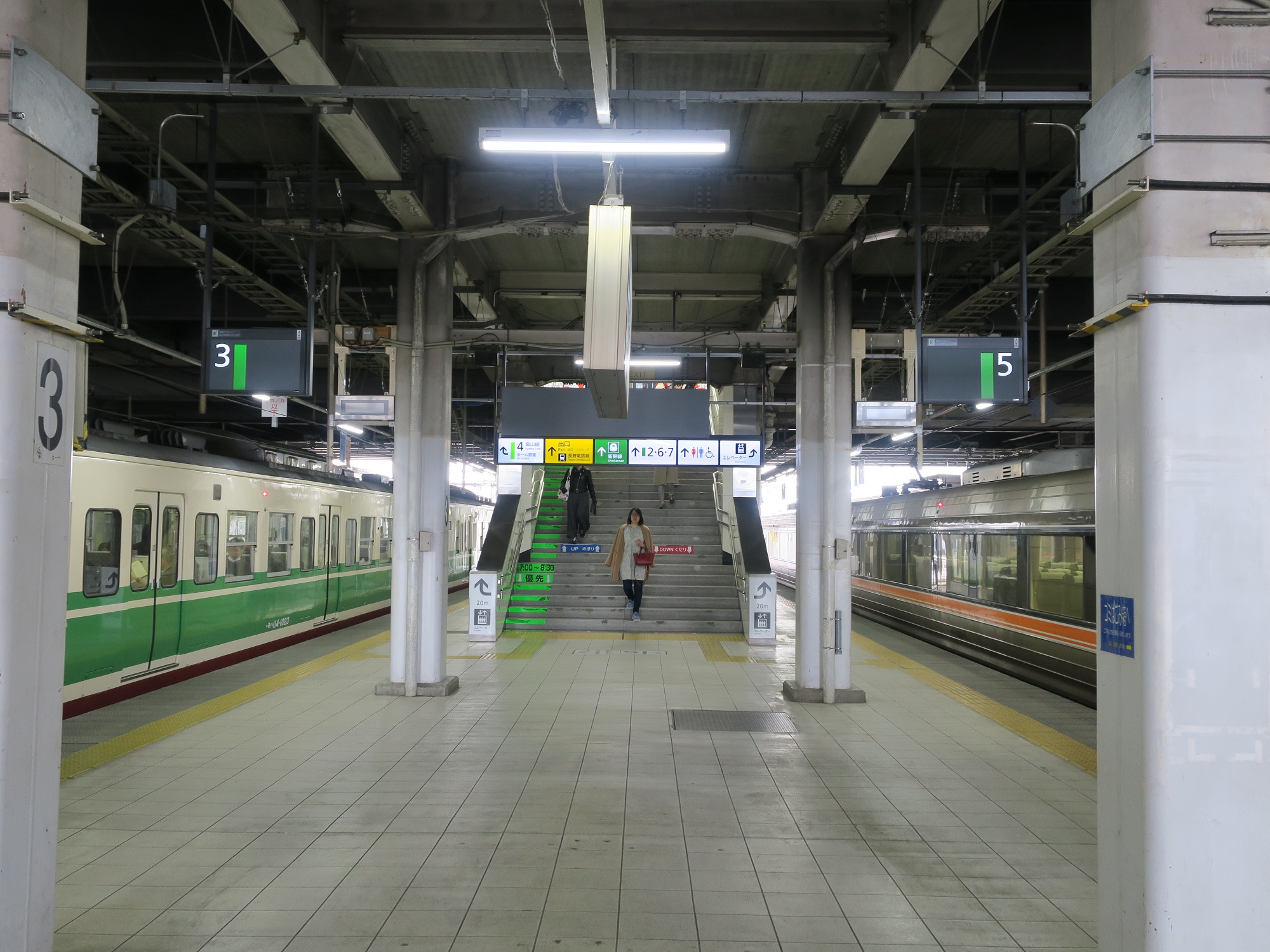 3番線・5番線です。主に信越本線を経由して、名古屋方面行きの特急しなのと、篠ノ井線で松本・塩尻方面行きの列車と、しなの鉄道線で上田・軽井沢方面行きの列車が発着します。