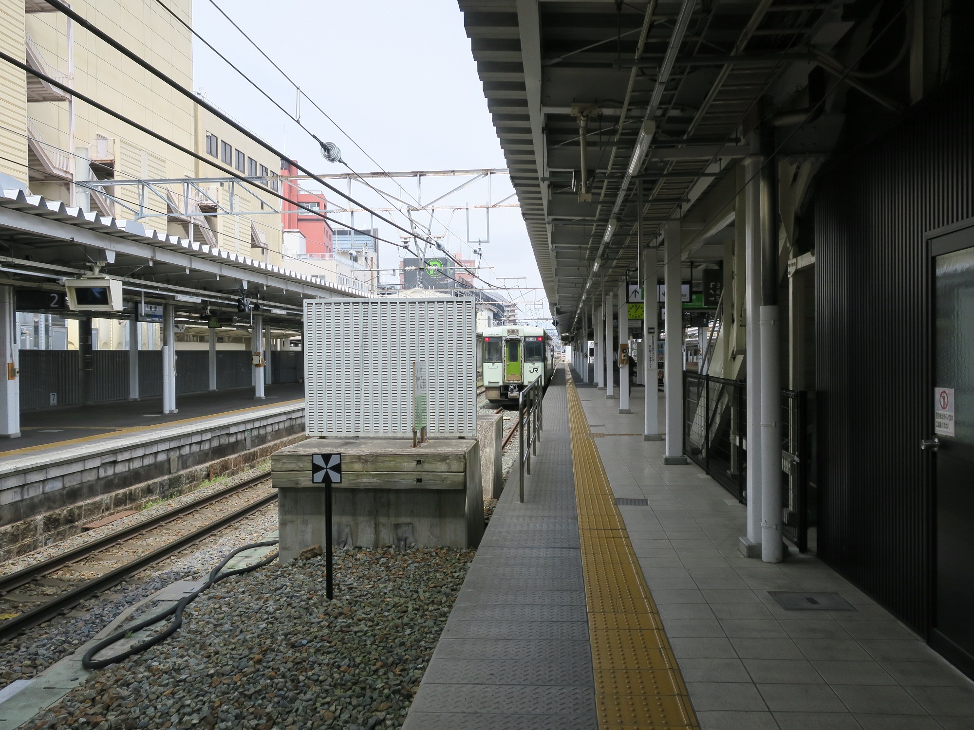 在来線ホーム2番線です。主にしなの鉄道線で、妙高高原方面行きの列車が発着します。なぜか1番線がありません。