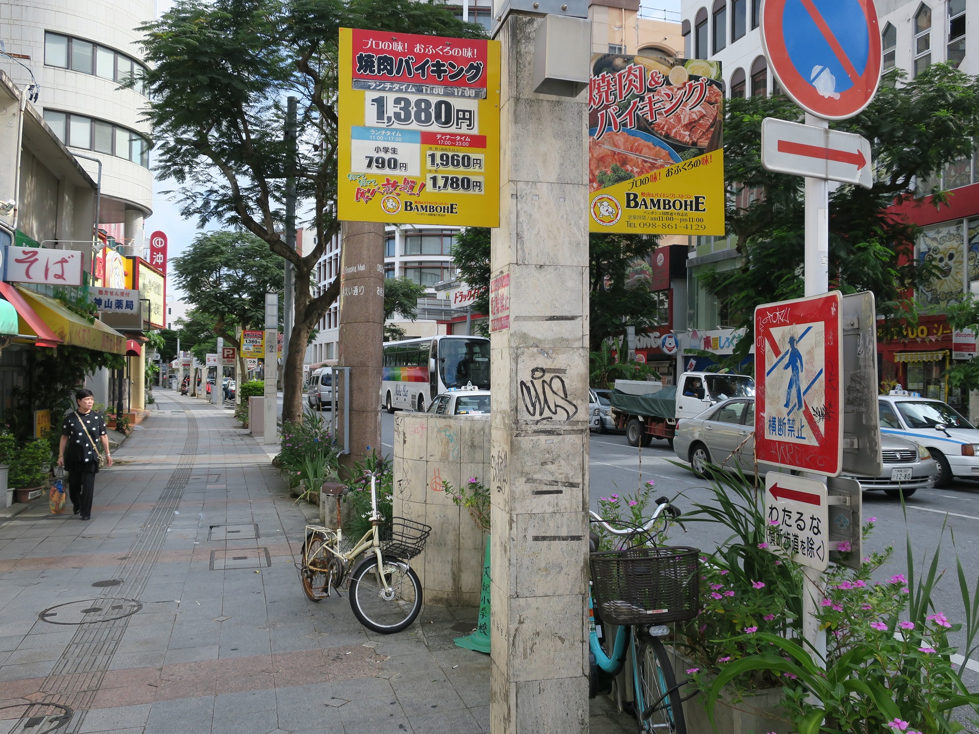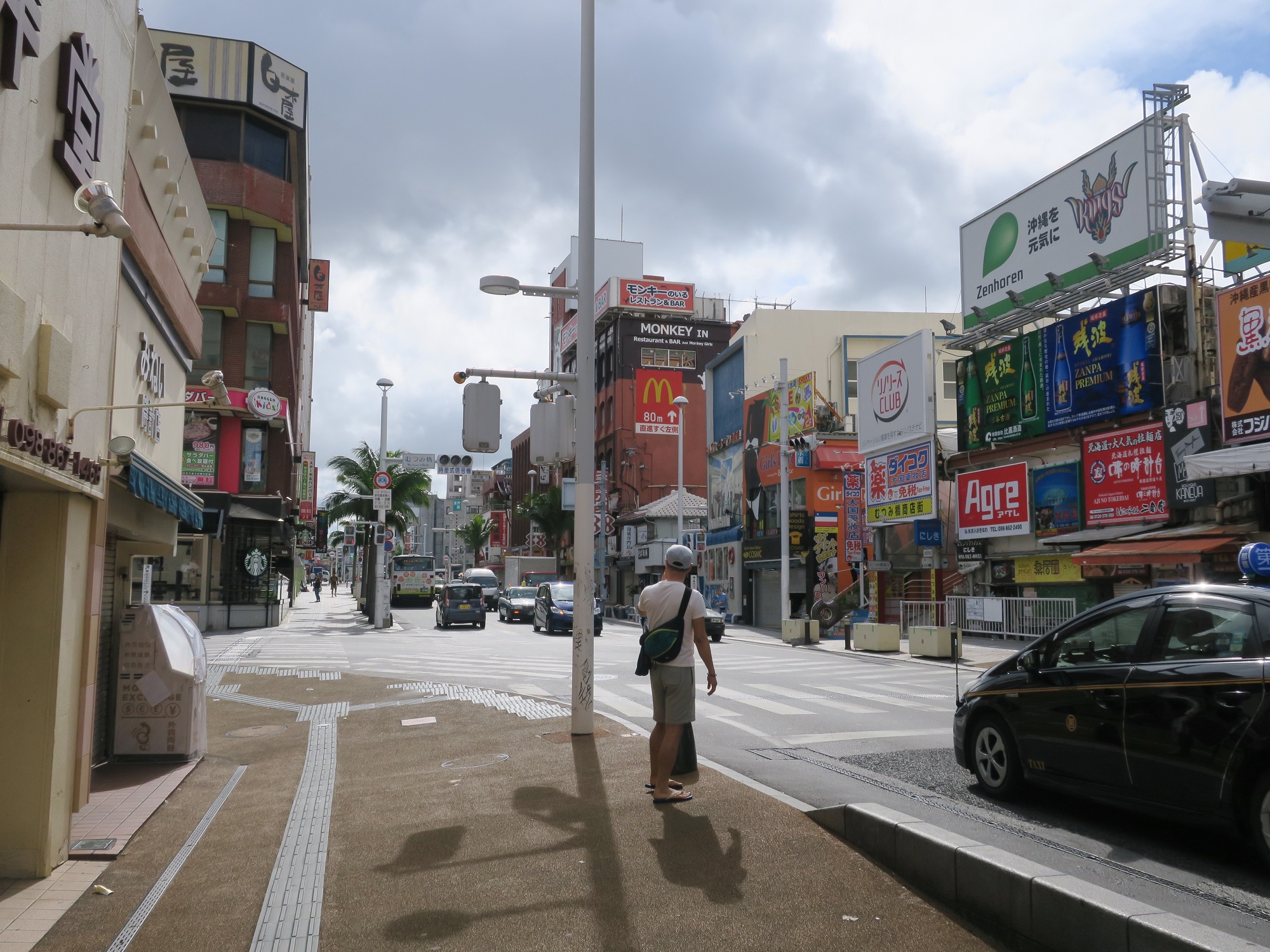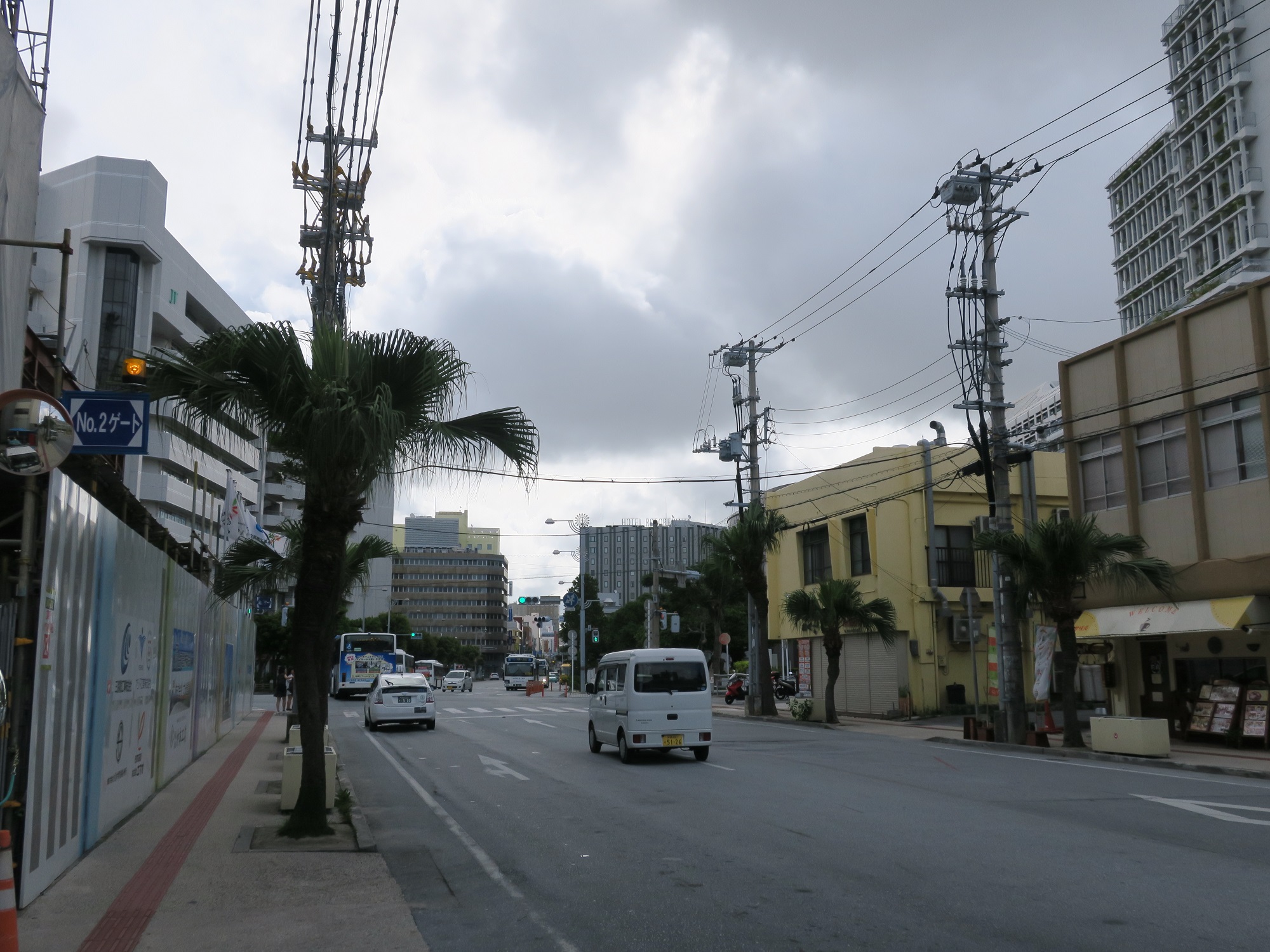 むつみ橋交差点を曲がると、おきえい通りがありまして、その先にゆいレールの美栄橋駅があります。なので、美栄橋駅を降りて2~3分ほど歩くと、国際通りの繁華街のど真ん中に着く感じです。