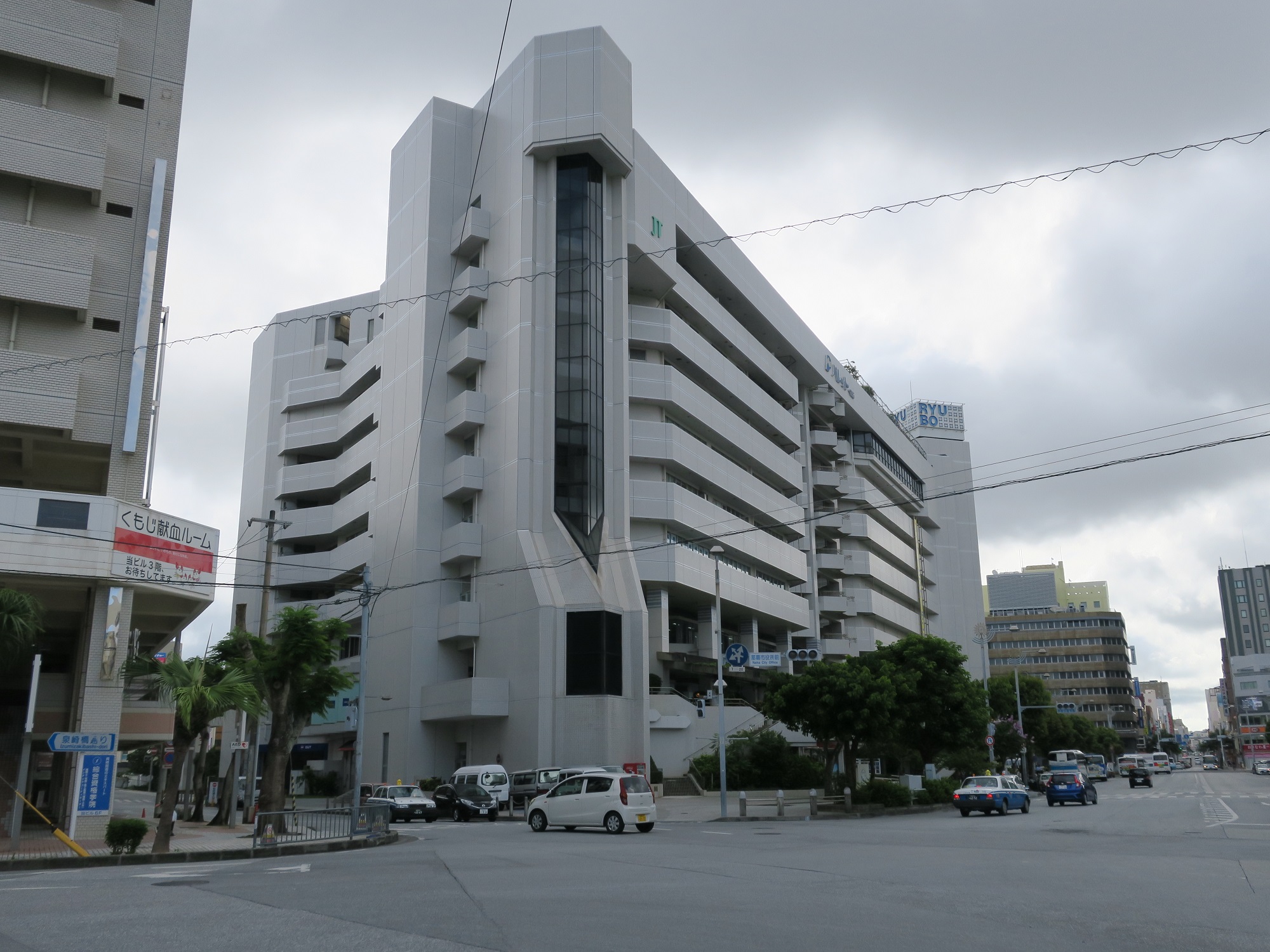 向かって左側に見える建物が、沖縄県のデパート・・・ていうか百貨店と言ってもいいと思うのですが、リウボウです。このリウボウに直結して、ゆいレールの県庁前駅があります。