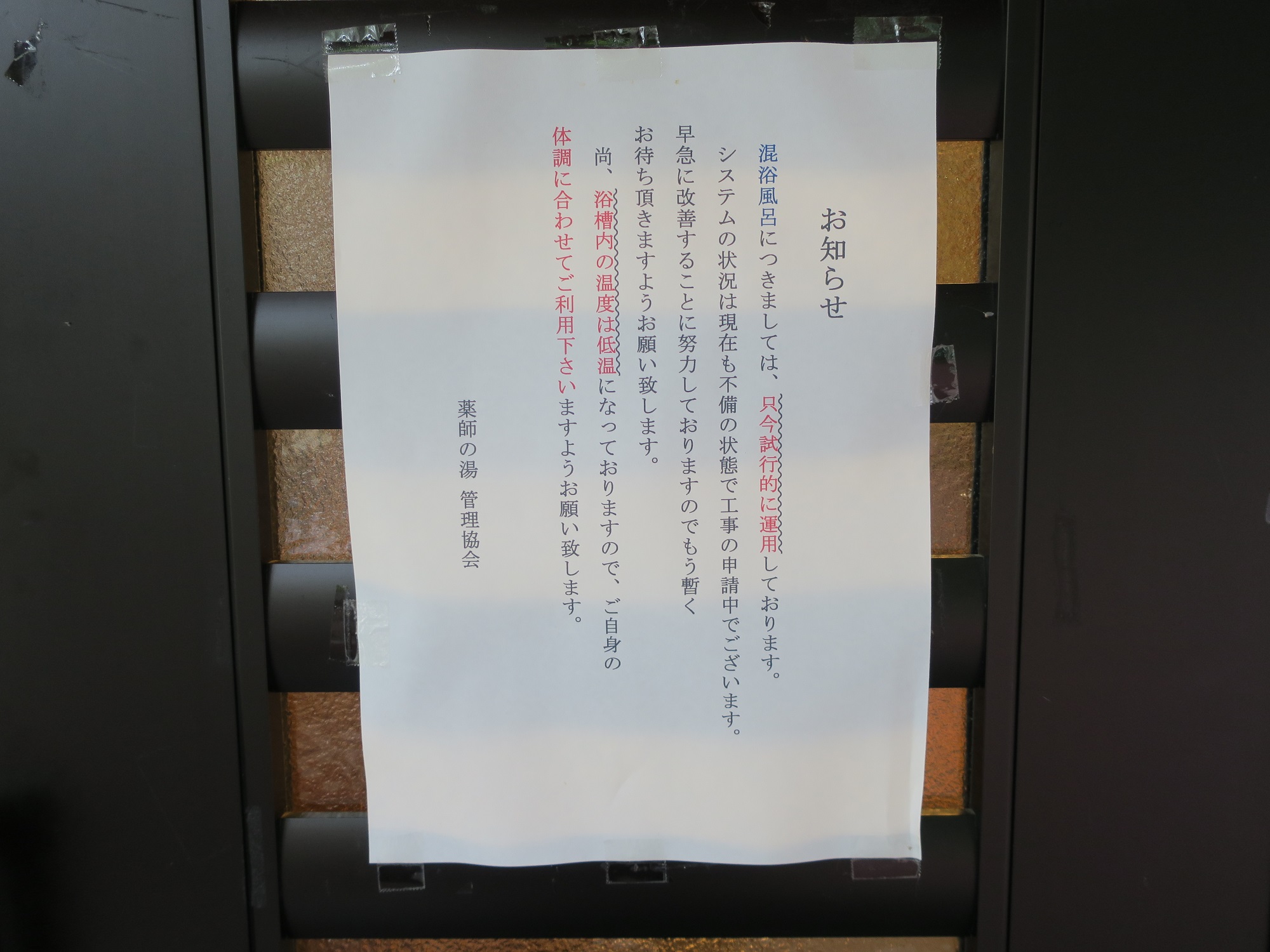 混浴露天風呂に入れなかったのと、サウナに入れなかったのが残念でした。システムの故障で混浴露天風呂に入れなかったのは仕方がないとして、営業時間中はサウナに入れるようにして欲しいのと、水風呂が欲しいと感じました。ただ、お値段がお値段だけに、温泉に入れるだけでもありがたいと思うべきなのかもしれません。