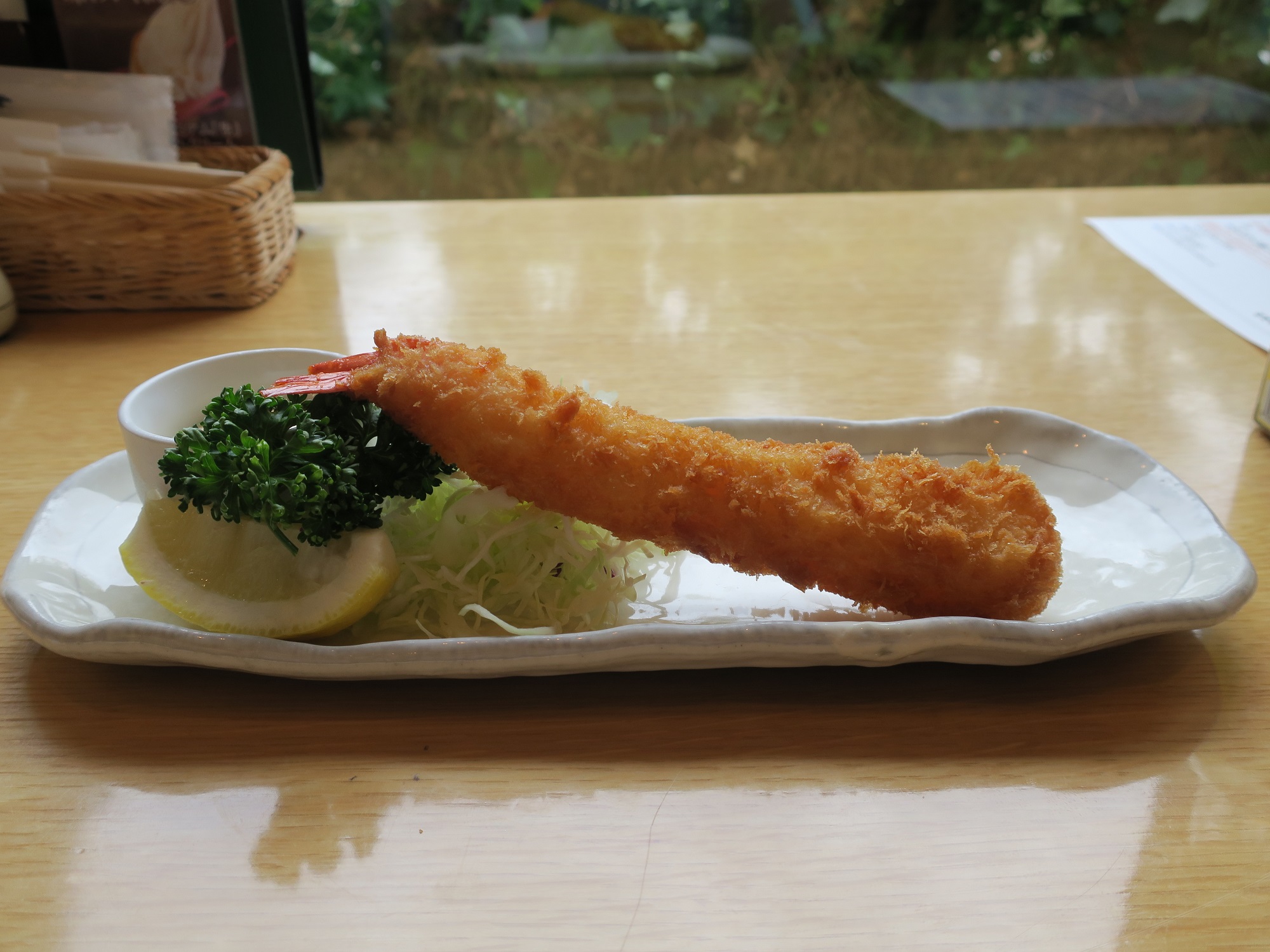 メニューの中に「特大エビフライ」ってのがありまして、「これって1本って頼み方できますか?」って聞いたらできるってことなので、頼んでみました。出てきたのが、これです。これ、お子様だったら絶対喜ぶんじゃないでしょうかねぇ。