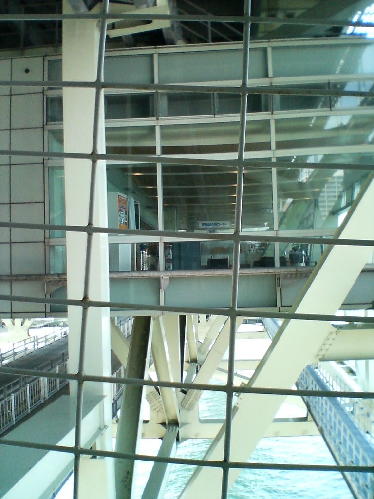 ご覧の通り、ここから人が落ちないように、全面金網が張ってあります。でないと、ここが自殺の名所になりかねないですし、かなり風が強くて揺れるので、誤って人が落ちましたってことになりかねないですからねぇ。