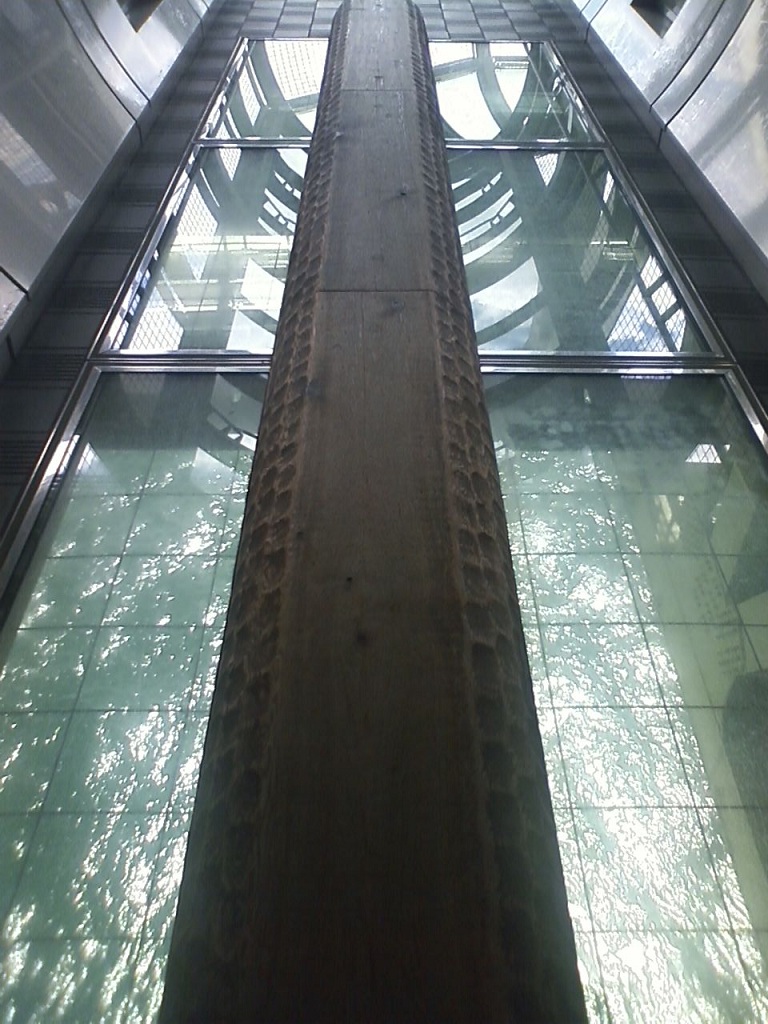 で、丸太橋を渡ってみると、こんな感じです。当然ですが、下は海でして、海面から反射する光でここだけ明るいんですね。しかも、海しか見えないとはいえ、結構高さを感じるので、高所恐怖症の人はちょっとダメかも。もっとも、基本的にここから落ちるってことはないんですけどね、ガラス張りですから。