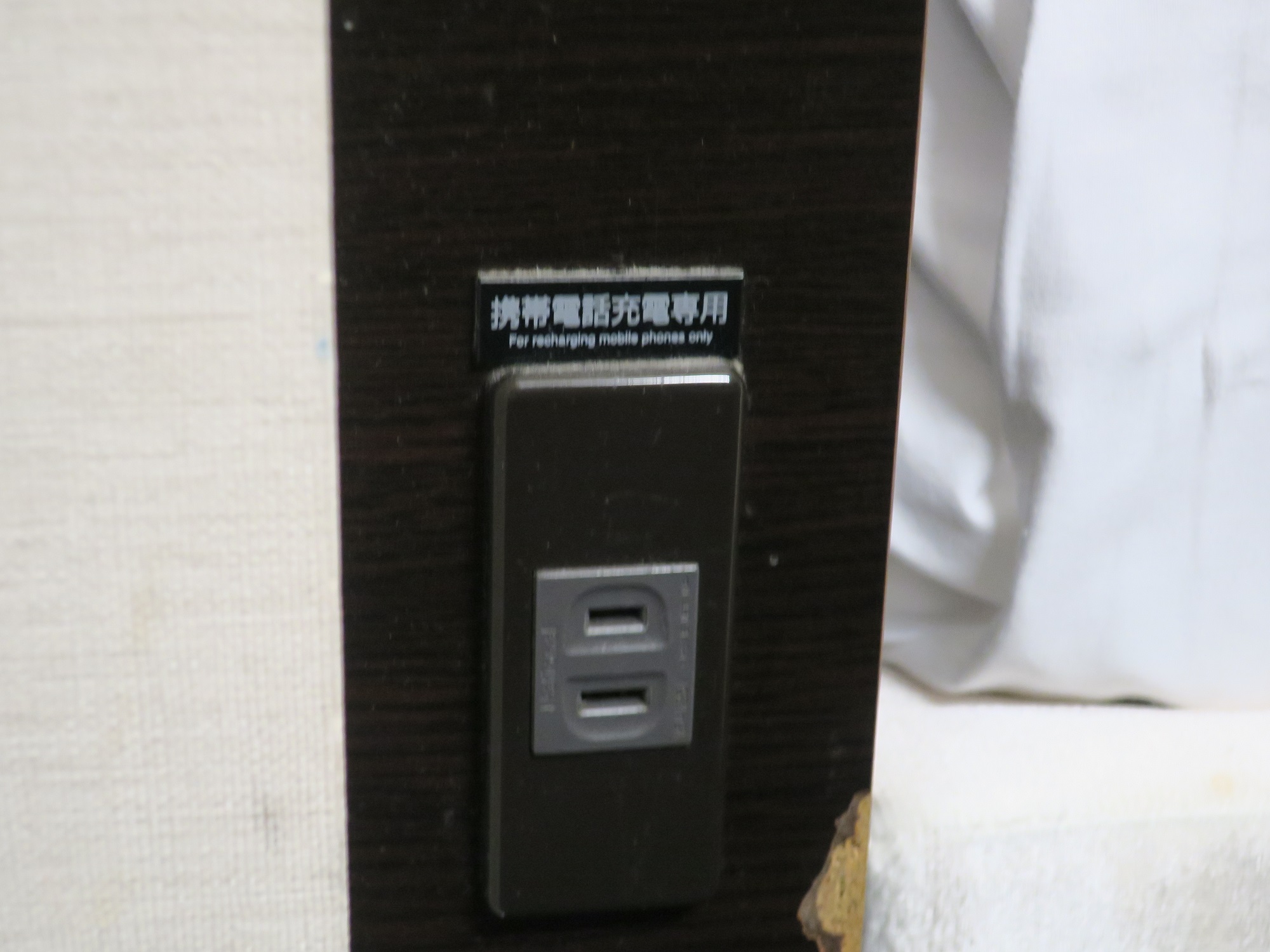 ベッド脇には、ケータイ・スマホ充電用のACコンセントがついています。ケータイ・スマホを枕元に置きたい人にとっては、ありがたいですね。