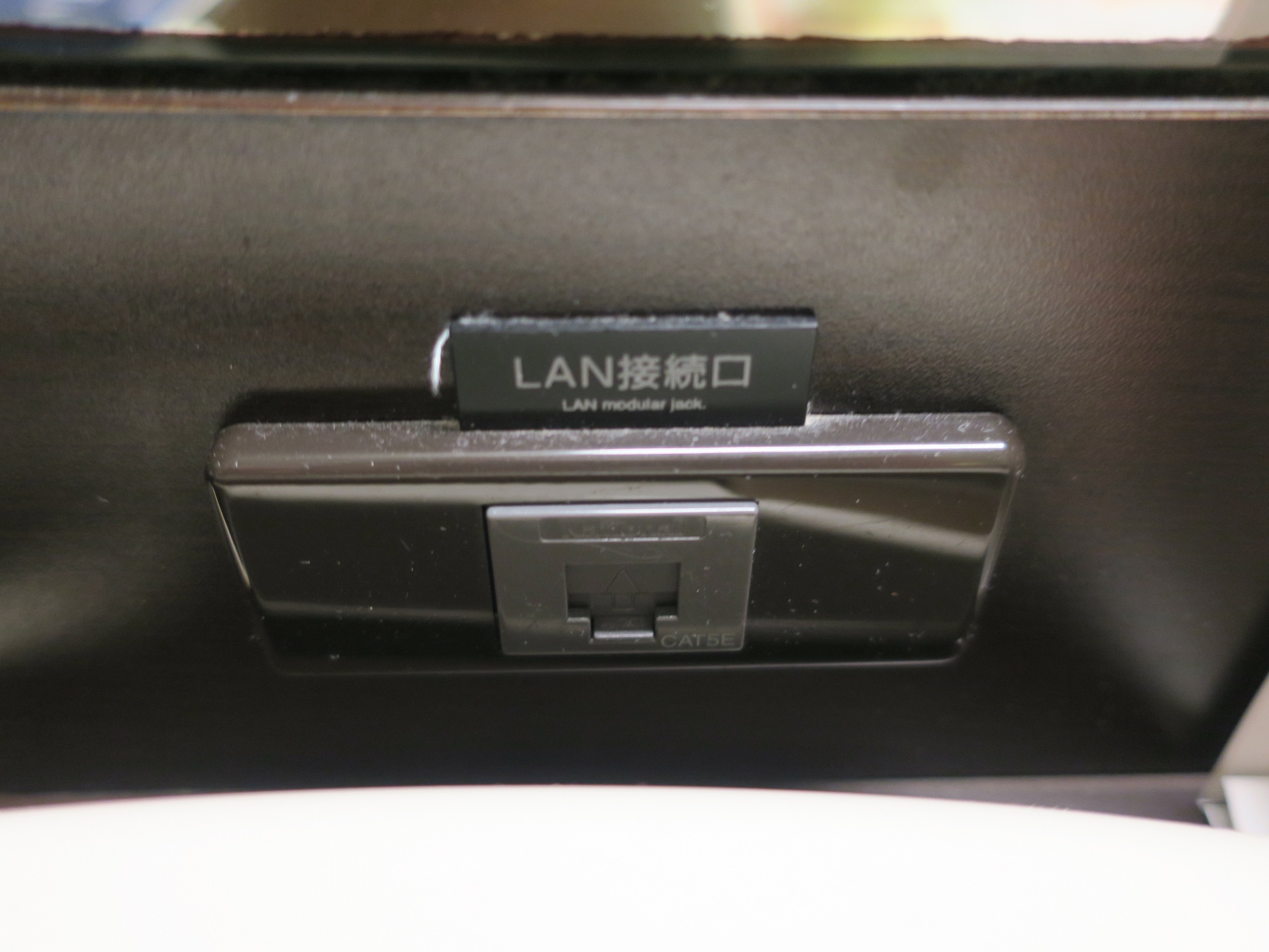 デスクの左側に、有線LANのコネクタがあります。インターネットは、有線LAN・無線LAN共に利用可能です。