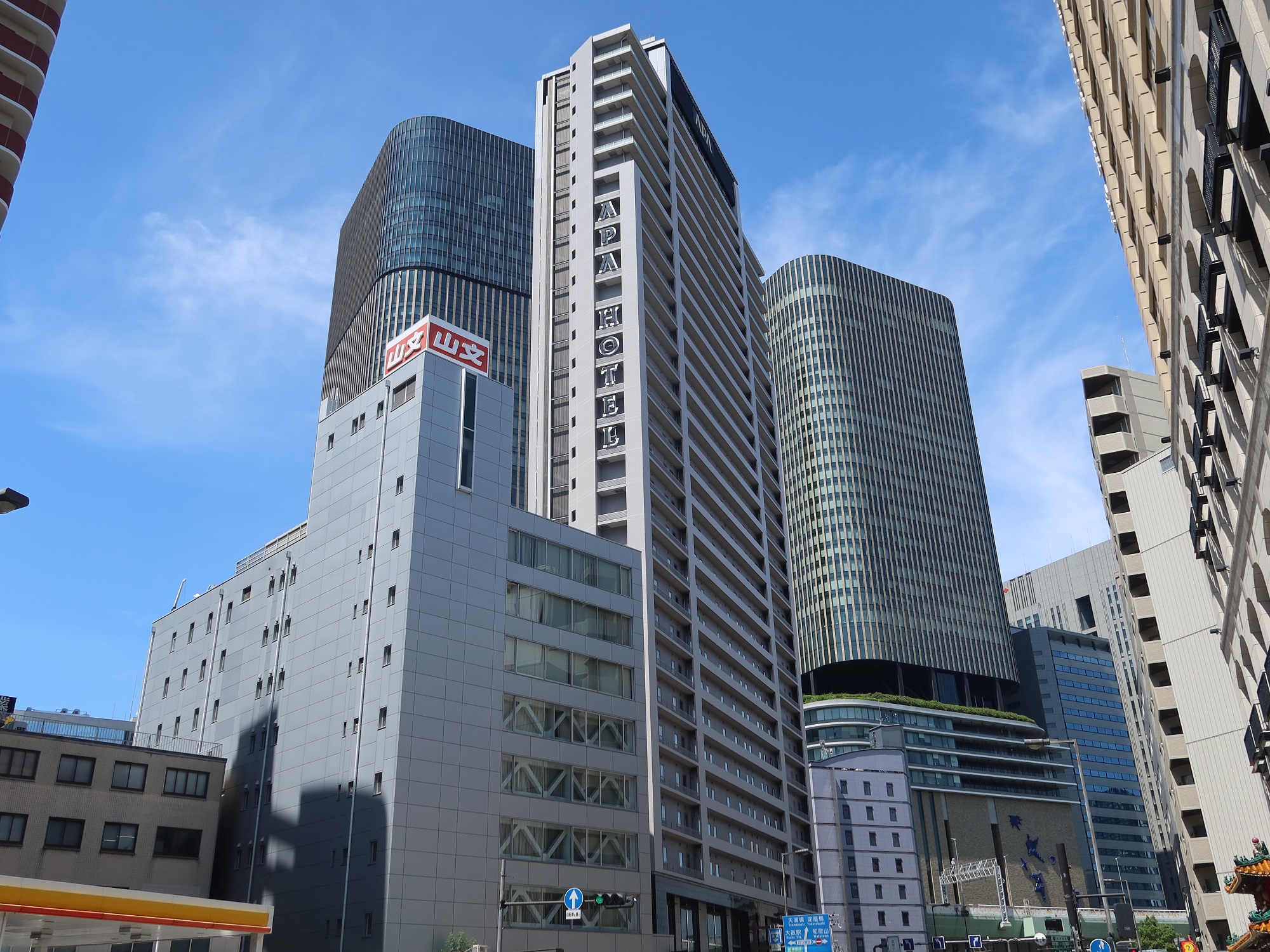 キューティー吉本が今回お泊りしたのは、アパホテル大阪肥後橋駅前でした。場所は、大阪メトロ四つ橋線の肥後橋駅、3番出口を出たところにあります。京阪電車の渡辺橋駅からも歩いて3分ぐらいです。コンビニは、同じ通りにファミリーマート、交差点を渡ったところにセブンイレブンがあります。