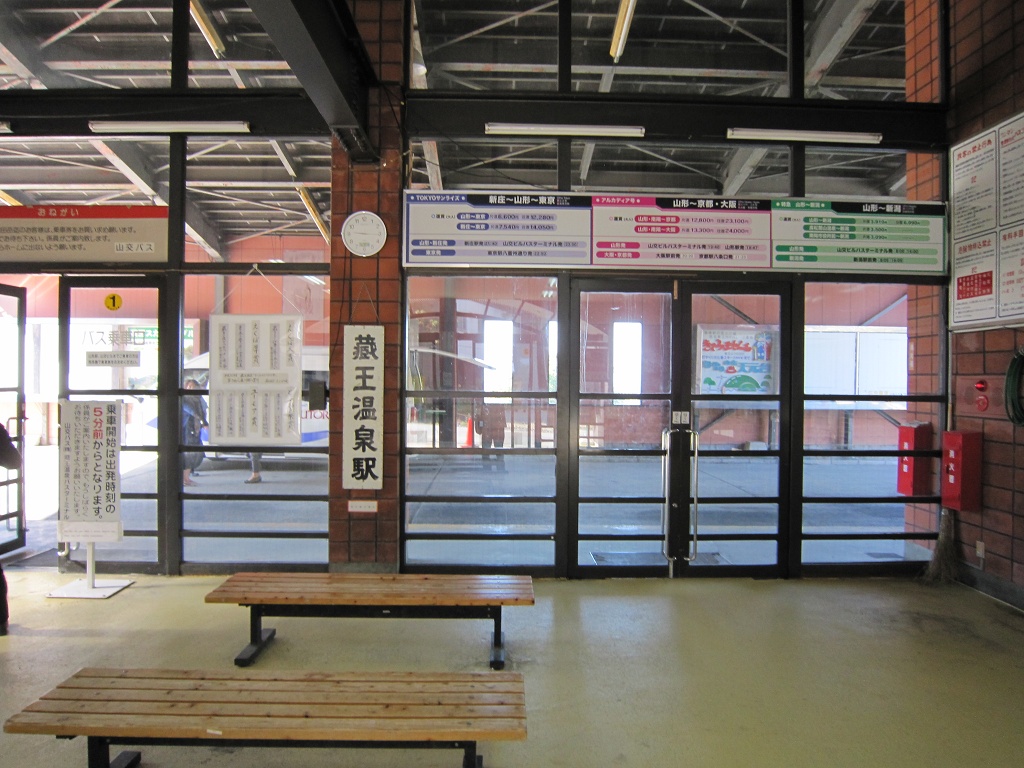 山形駅からバスで約40分、蔵王温泉バスターミナルに着きました。立派な建物、かつこじんまりとしたバスターミナルでしたよ。