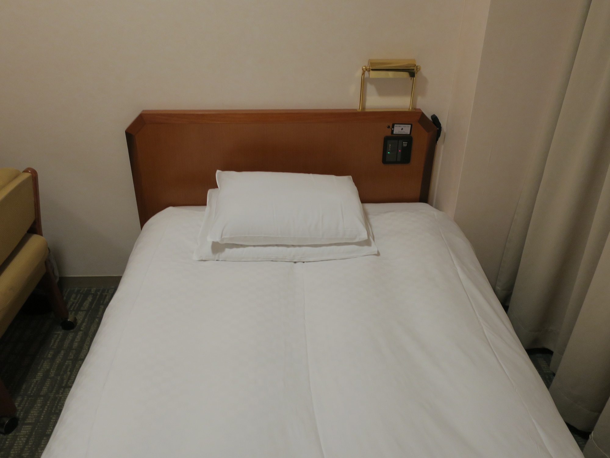 昨今の格安ホテルってシングルルームにしてセミダブルサイズのベッドを置いているケースがある中、ここはシングルベッドが置いてあります。