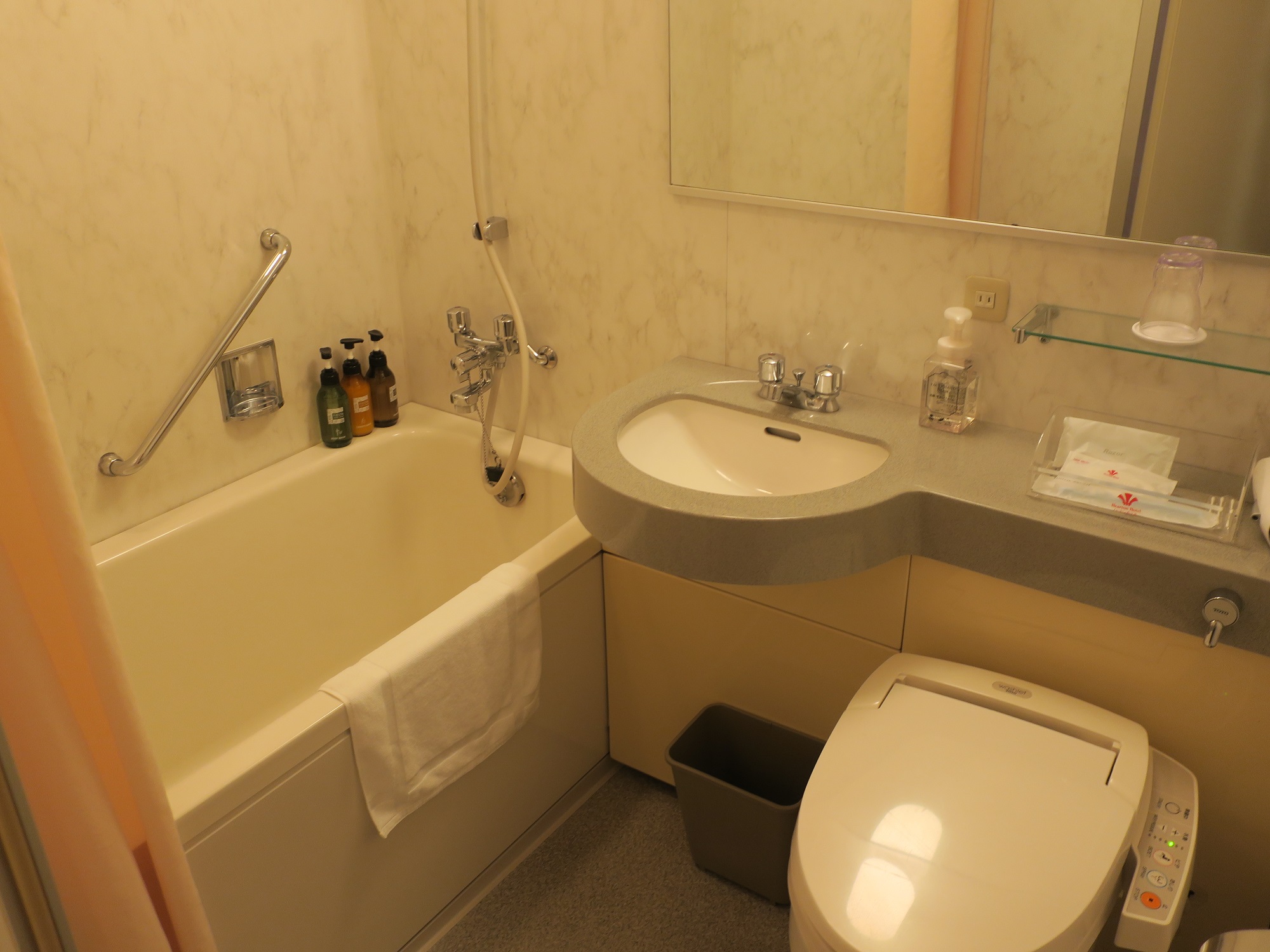 ユニットバスです。バスタブは決して広くないものの、昨今増えている事実上シャワーしか使えないサイズのバスタブではなく、まともなサイズでした。なので、ゆっくり入れるかどうかは置いといて、バスタブとしては使えるサイズです。