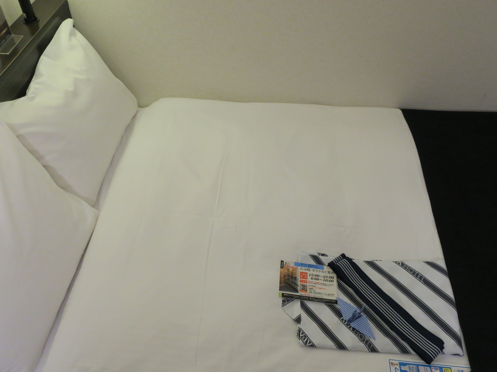アパホテル同様、ベッドサイズは大きいです。セミダブルサイズのベッドが置いてあります。
