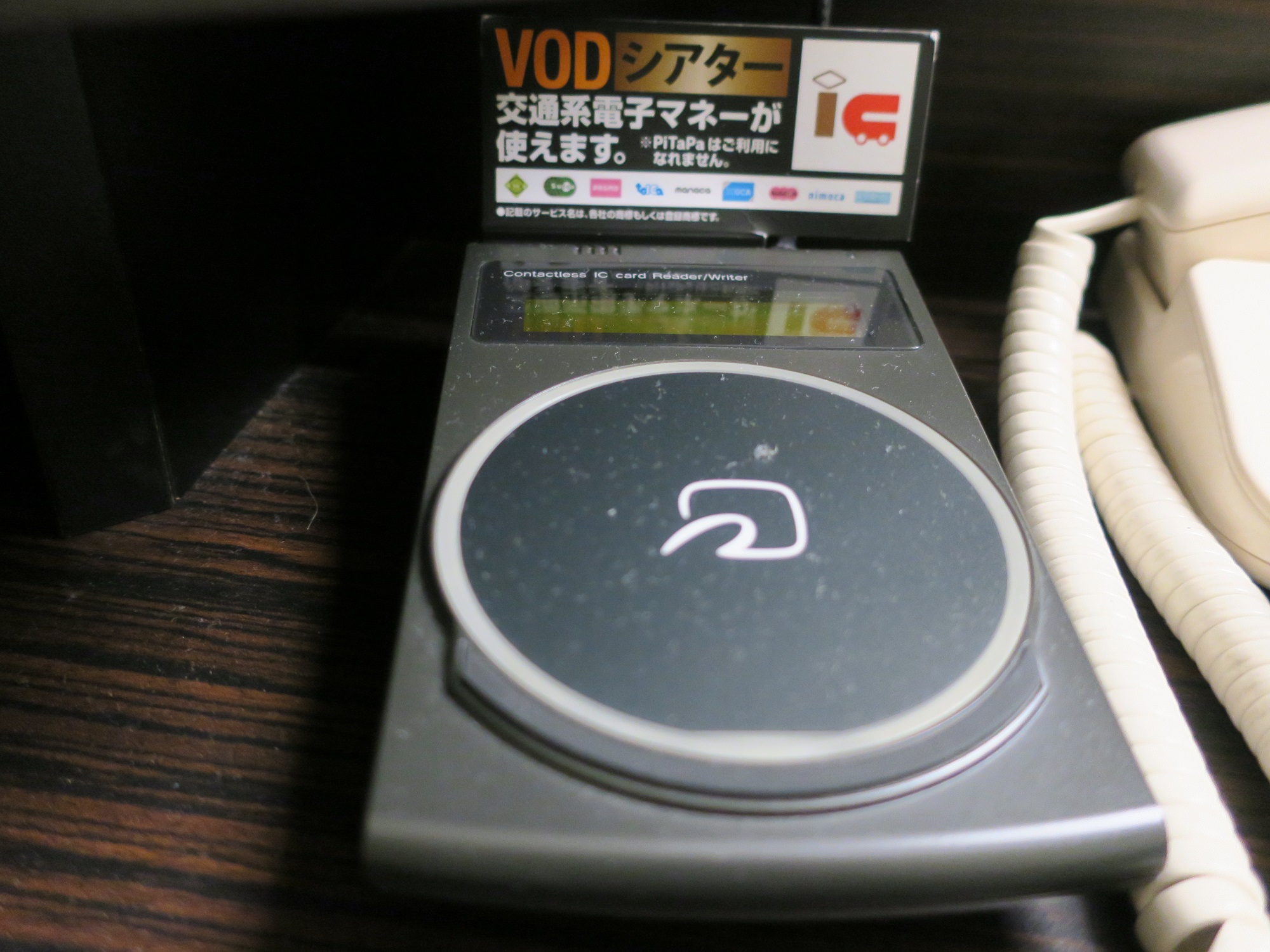 電話機の横にはICカードリーダーが置いてありまして、一体何かと思ったら、VODシアターの料金をSuicaやPASMOなどの交通系電子マネーで支払うことができるんだそうです。ただし、使い方はよくわかりませんでした。